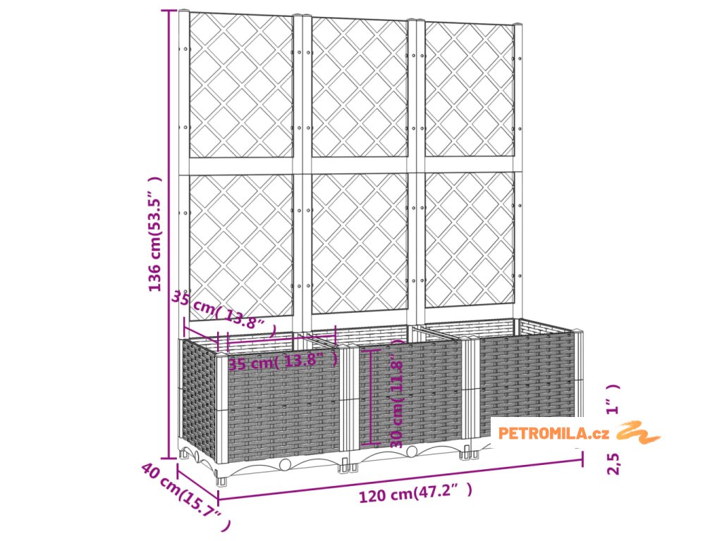 Tento zahradní truhlík s treláží představuje skvělé řešení pro pěstování popínavých rostlin na zahradě, verandě nebo terase.