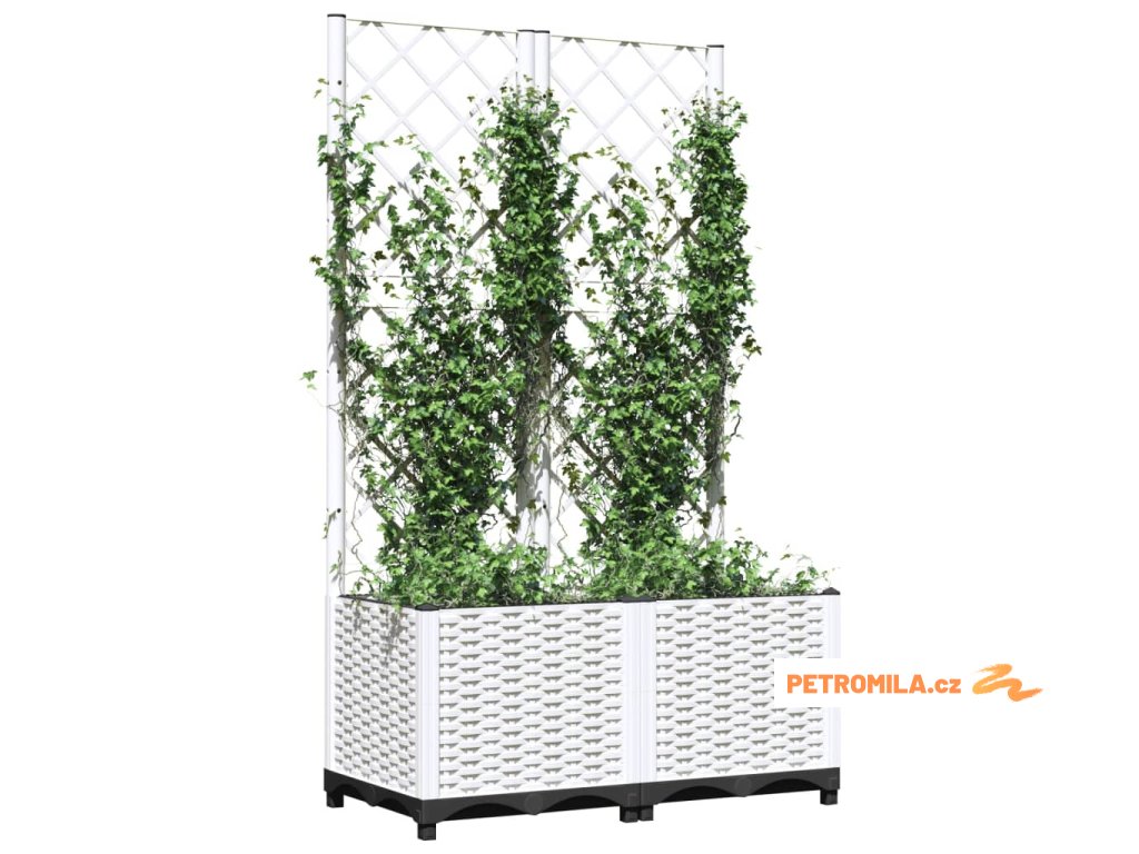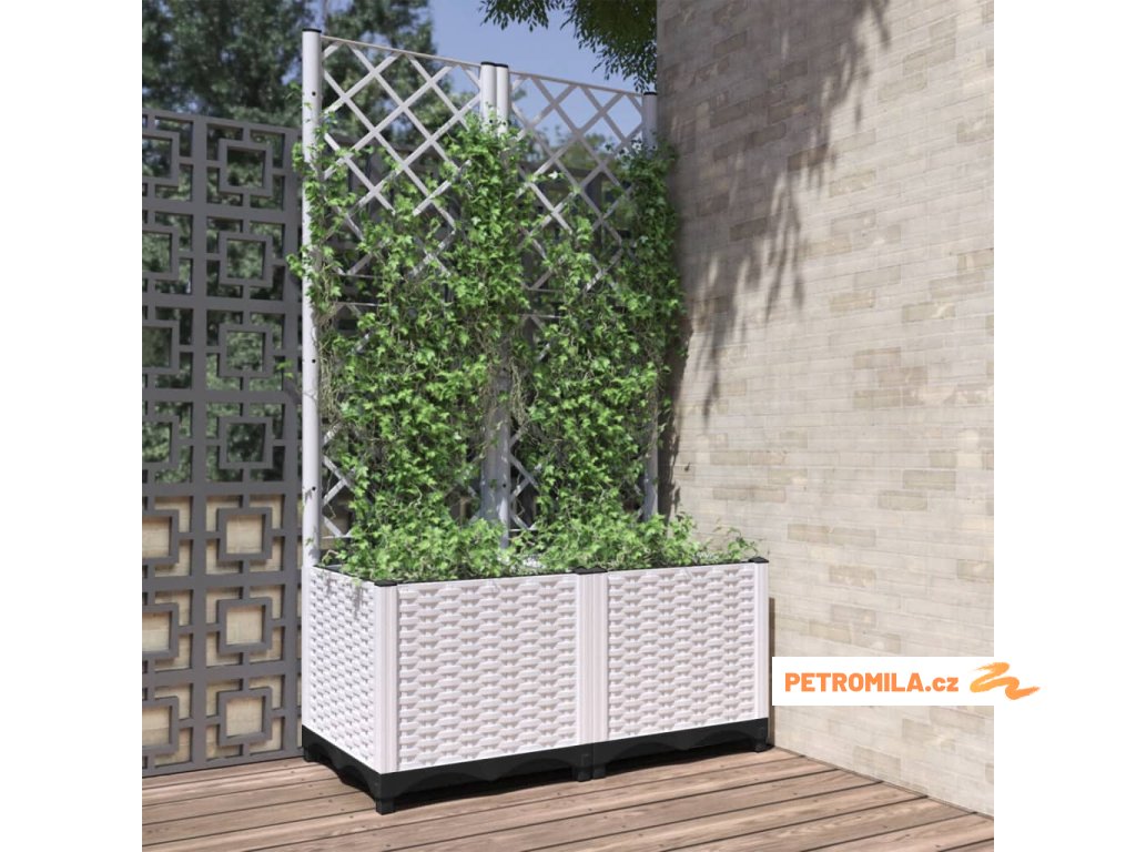 Zahradní truhlík s treláží bílý 80 x 40 x 136 cm PP