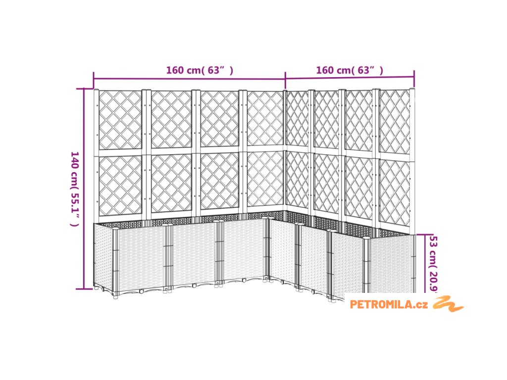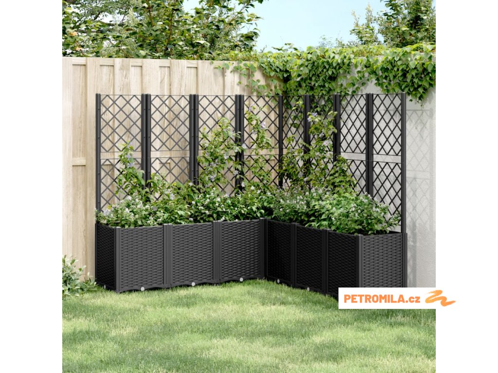- Praktický design: Ideální dno pomáhá zadržovat vlhkost a umožňuje snadný odvod vody. Vestavěná treláž navíc nabízí oporu pro růst popínavých rostlin, jako jsou rajčata, hrášek nebo růže.