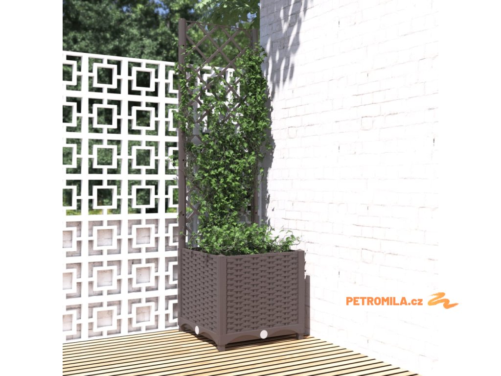 Zahradní truhlík s treláží hnědý 40 x 40 x 136 cm PP