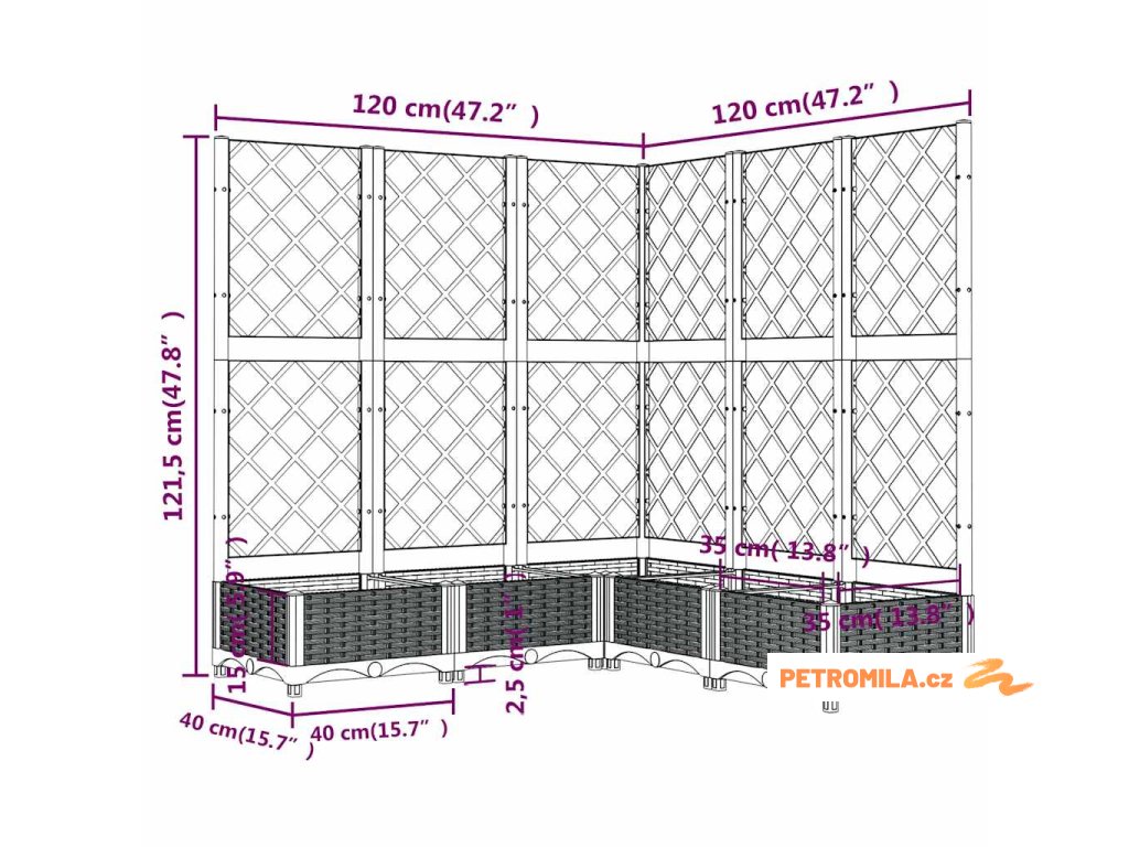 Truhlík je vyrobený z klimaticky odolného PP, je tedy pevný, robustní a vhodný pro venkovní použití. Do spodního květináče se vejde spousta zelených rostlin a květin. Vestavěná treláž zase nabízí oporu pro růst popínavých rostlin, jako jsou rajčata, hrášek nebo růže.