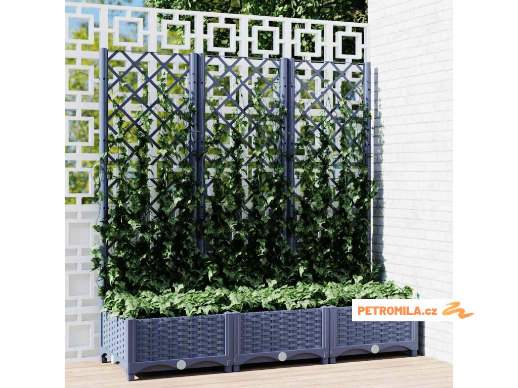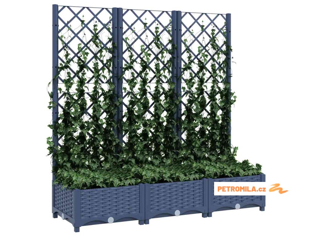 Zahradní truhlík s treláží modrá šedá 120 x 40 x 121,5 cm PP