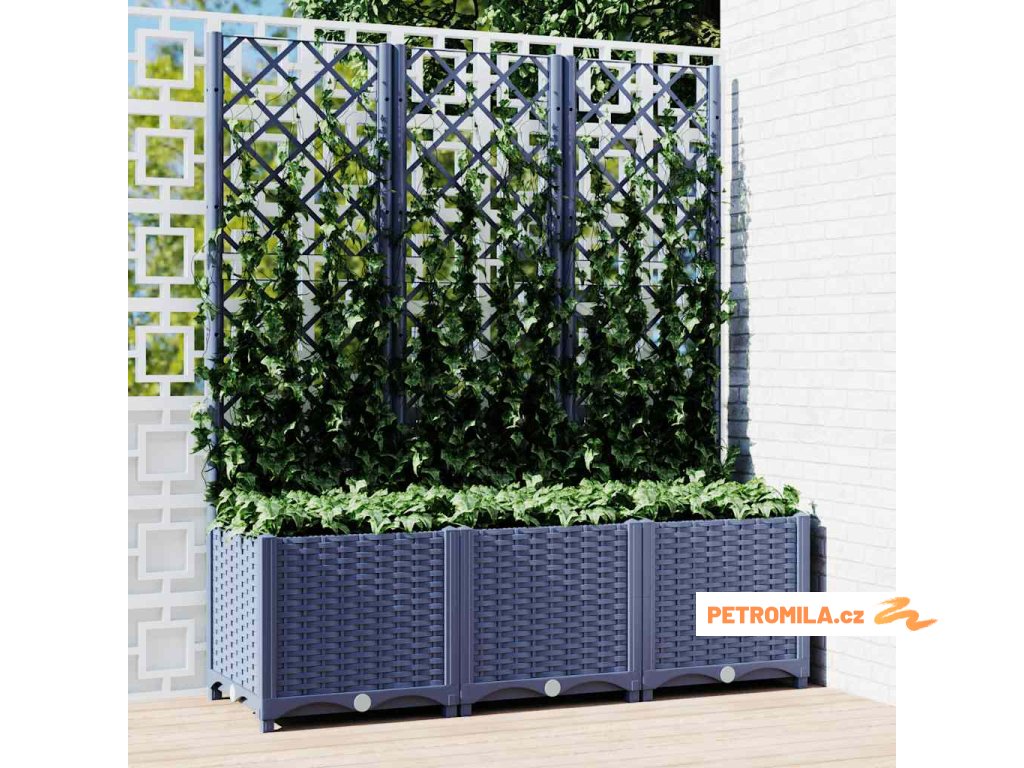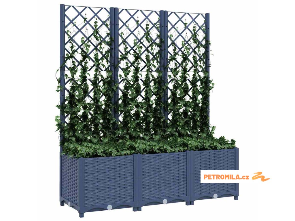 Zahradní truhlík s treláží modrá šedá 120 x 40 x 136 cm PP