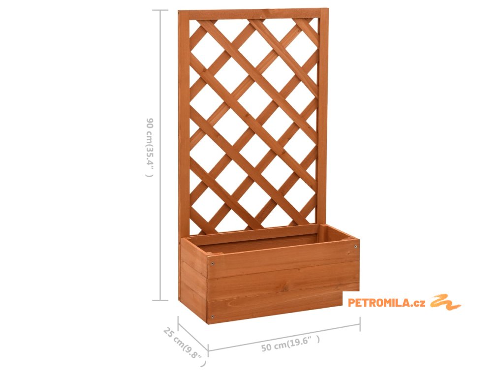 Zahradní truhlík s treláží oranžový 50x25x90 cm masivní jedle