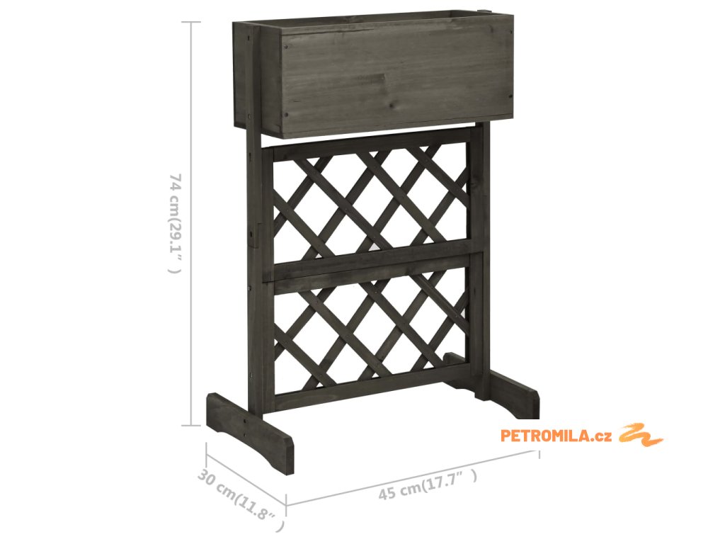Zahradní truhlík s treláží šedý 45 x 30 x 74 cm masivní jedle