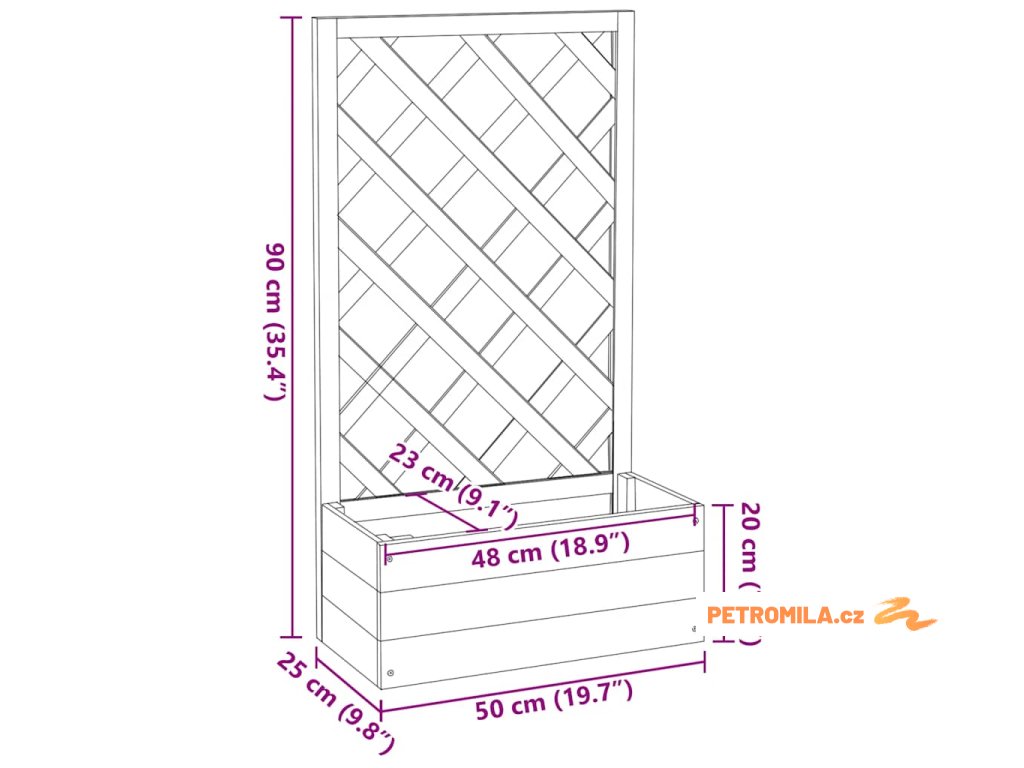 Truhlík s treláží je zhotovený z masivního jedlového dřeva, je tedy velice odolný a hodí se i pro venkovní použití. Do květináče si můžete zasadit spoustu zelených rostlinek či květin. Integrovaná treláž navíc nabízí prvotřídní oporu pro popínavé rostliny.