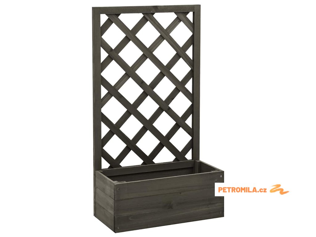 Zahradní truhlík s treláží šedý 50 x 25 x 90 cm masivní jedle