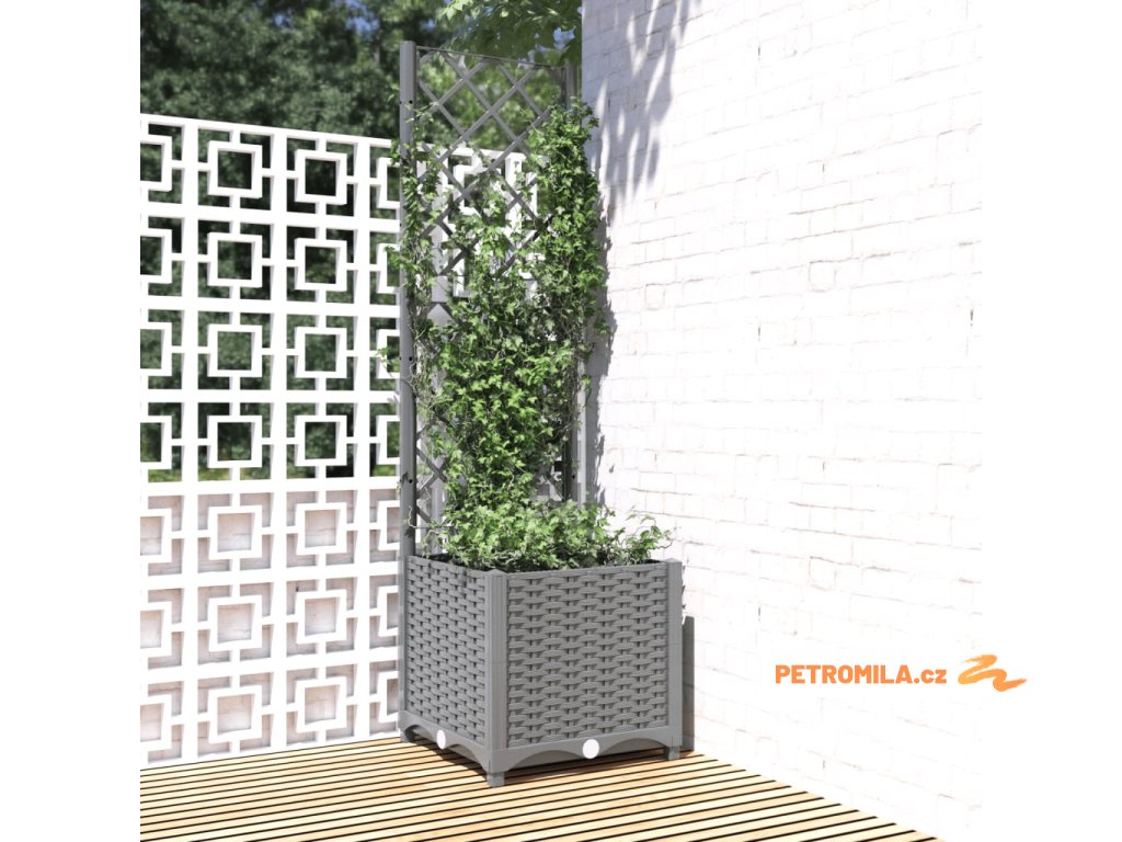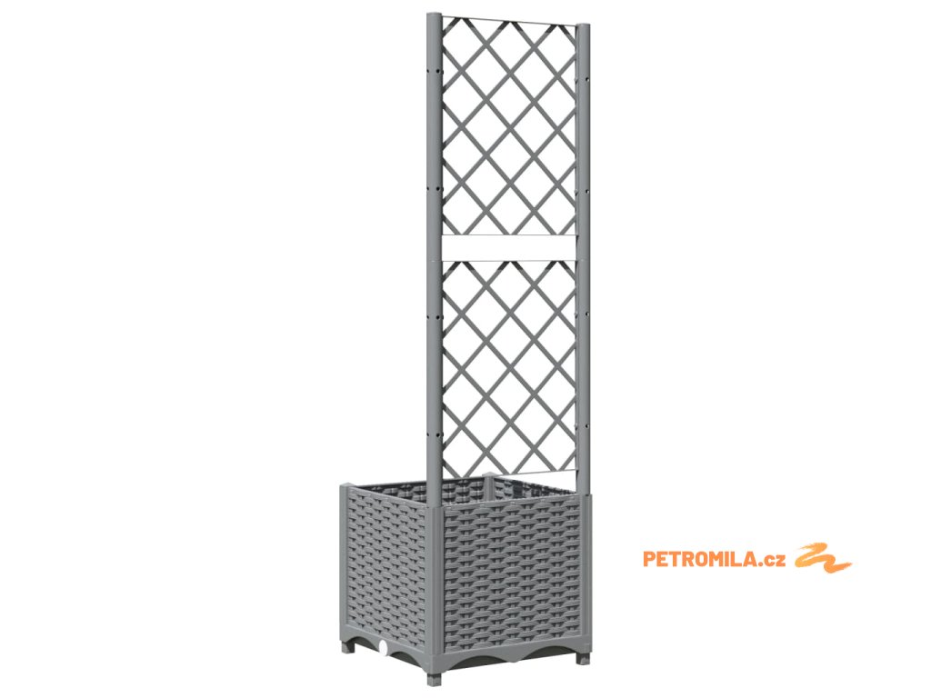 Zahradní truhlík s treláží světle šedý 40 x 40 x 136 cm PP