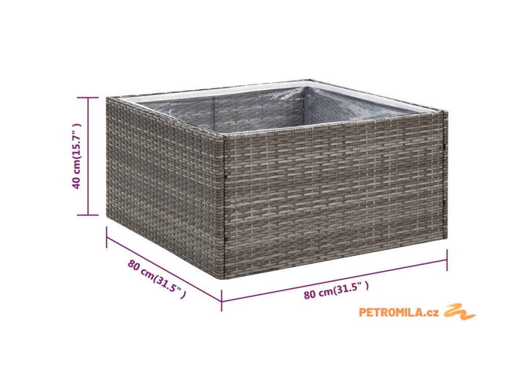 Zahradní truhlík šedý 80 x 80 x 40 cm polyratan