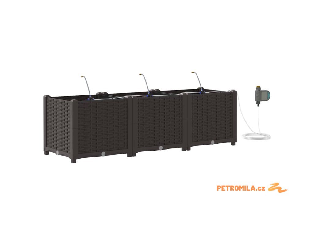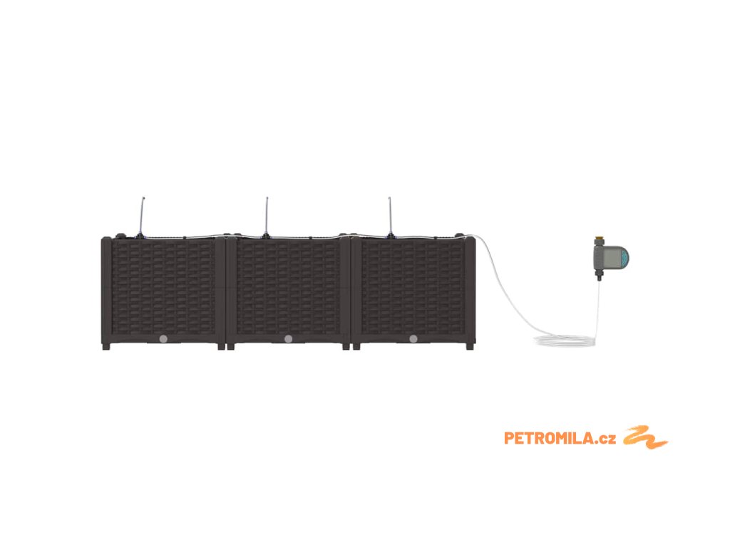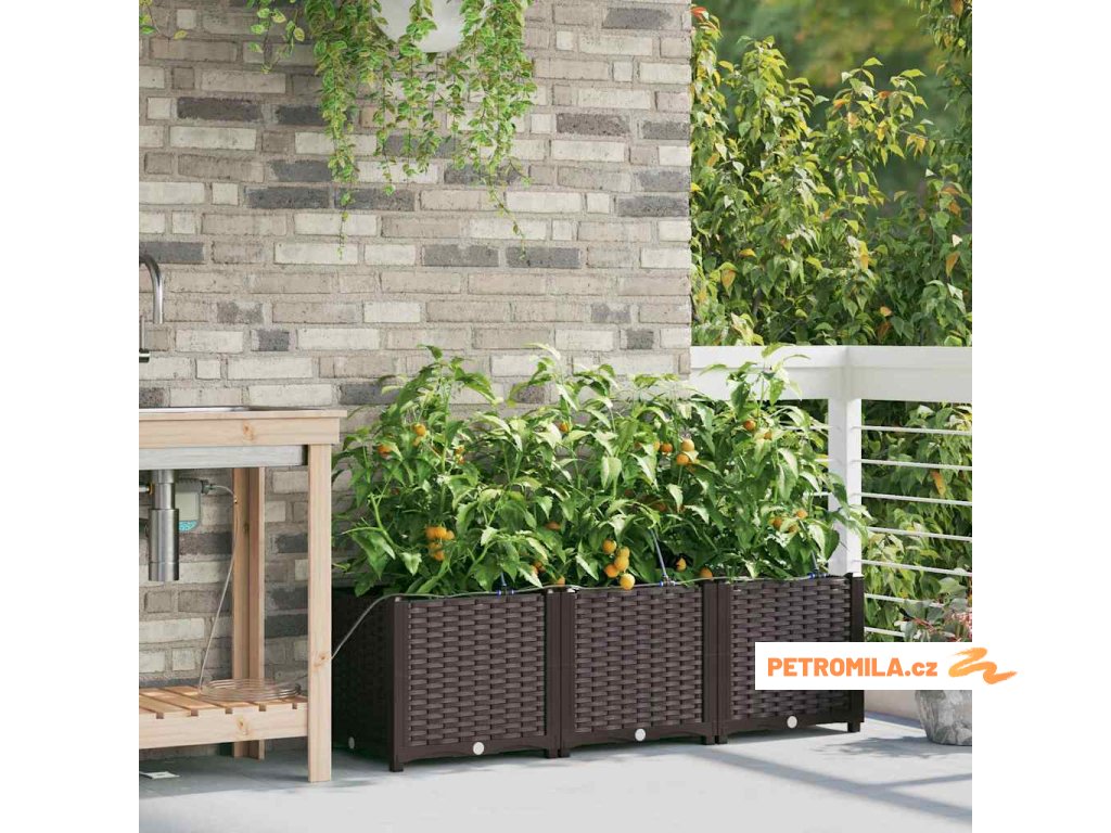 Materiál konstrukce: Zahradní květináč je vyroben z oceli odolné vůči UV záření, což zajišťuje trvanlivost a odolnost vůči povětrnostním změnám. Tato volba materiálu nabízí robustní ochranu, která vhodně odolává silnému slunečnímu záření a sezónním výkyvům, udržuje vaše rostliny naživu po celý rok bez kompromisů v strukturální integritě květináče.,Integrovaný zavlažovací systém: Tento zahradní květináč je vybaven pokročilým zavlažovacím systémem, který odstraňuje nejistotu při zalévání. Využívající integrované kanály, efektivně distribuuje vodu přímo k kořenům rostlin, což zajišťuje, že dostávají dostatečnou vlhkost, zatímco snižuje plýtvání vodou a podporuje zdravější růst.,Moderní design: Ukazuje chic tkaný vzor, elegantní jednoduchost tohoto květináče ladí s moderním estetickým pojetím. Jeho odrazivý matný povrch dodává jemný dotek, což mu umožňuje bez problémů zapadnout do různorodých venkovních prostředí i při zachování moderního stylu s čistými, decentními liniemi.,Všestranné použití: Ideální pro venkovní umístění, tento květináč má jak dekorativní, tak praktické účely. Jeho prostorný interiér pojme různé druhy rostlin, od bujných kapradin po živé květiny, což z něj činí vhodný pro sezónní přechody nebo celoroční použití, poskytující prvotřídní zkušenost s výsadbou pro koníčky i zkušené zahradníky.,Údržba a péče: Aby si zachoval svůj prvotřídní vzhled, umístěte tento květináč na stabilním místě a vyhněte se vystavení přímému slunečnímu záření po delší dobu. Pravidelně čistěte suchým hadříkem a zajišťujte spojení při sestavování, aby se zaručila stabilita a estetická hodnota v průběhu času.- Barva: Hnědá