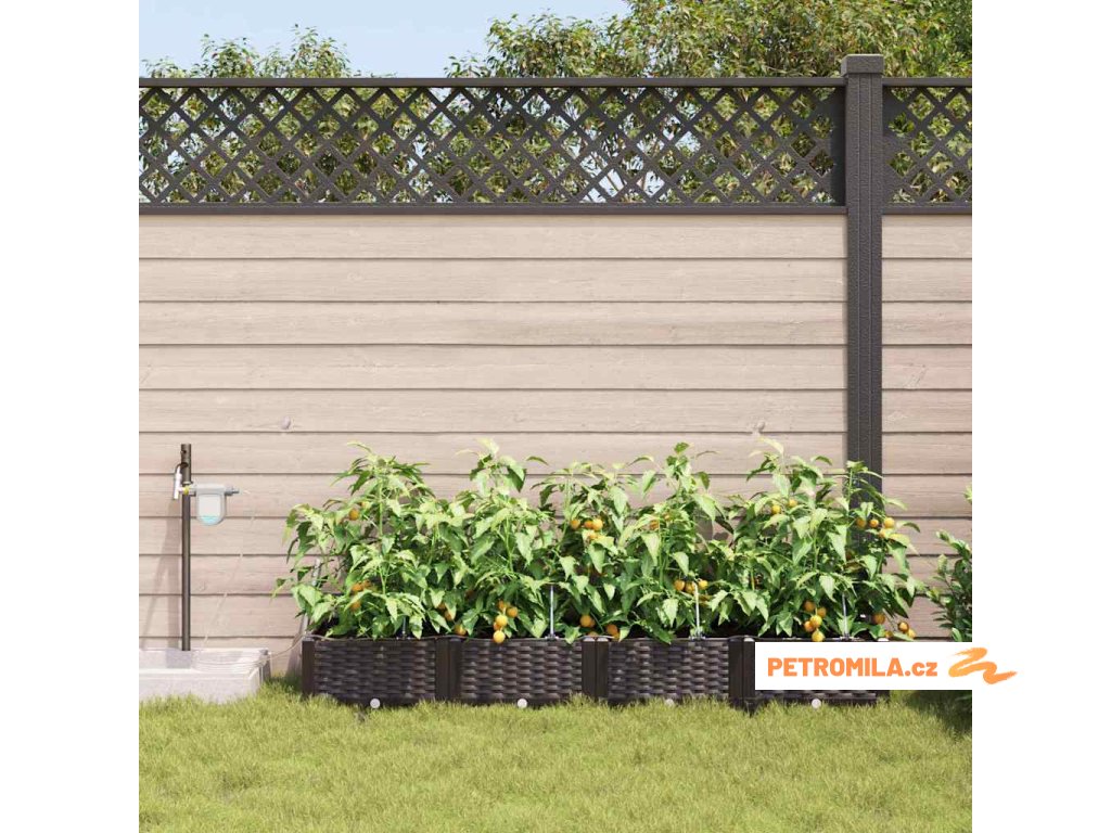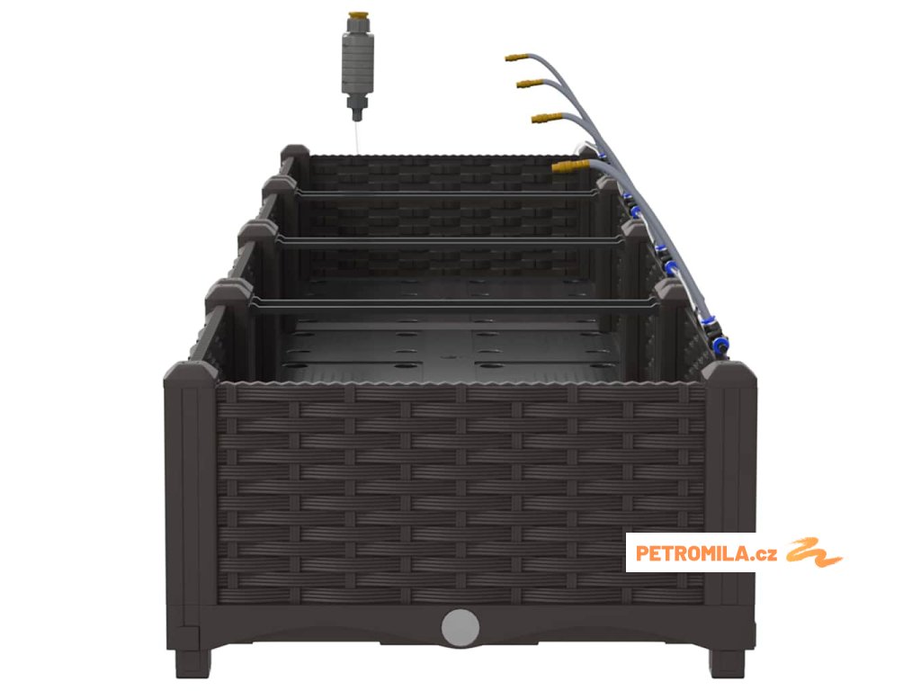 Materiál konstrukce: Zahradní květináč je vyroben z oceli odolné vůči UV záření, což zajišťuje trvanlivost a odolnost vůči povětrnostním změnám. Tato volba materiálu nabízí robustní ochranu, která vhodně odolává silnému slunečnímu záření a sezónním výkyvům, udržuje vaše rostliny naživu po celý rok bez kompromisů v strukturální integritě květináče.,Integrovaný zavlažovací systém: Tento zahradní květináč je vybaven pokročilým zavlažovacím systémem, který odstraňuje nejistotu při zalévání. Využívající integrované kanály, efektivně distribuuje vodu přímo k kořenům rostlin, což zajišťuje, že dostávají dostatečnou vlhkost, zatímco snižuje plýtvání vodou a podporuje zdravější růst.,Moderní design: Ukazuje chic tkaný vzor, elegantní jednoduchost tohoto květináče ladí s moderním estetickým pojetím. Jeho odrazivý matný povrch dodává jemný dotek, což mu umožňuje bez problémů zapadnout do různorodých venkovních prostředí i při zachování moderního stylu s čistými, decentními liniemi.,Všestranné použití: Ideální pro venkovní umístění, tento květináč má jak dekorativní, tak praktické účely. Jeho prostorný interiér pojme různé druhy rostlin, od bujných kapradin po živé květiny, což z něj činí vhodný pro sezónní přechody nebo celoroční použití, poskytující prvotřídní zkušenost s výsadbou pro koníčky i zkušené zahradníky.,Údržba a péče: Aby si zachoval svůj prvotřídní vzhled, umístěte tento květináč na stabilním místě a vyhněte se vystavení přímému slunečnímu záření po delší dobu. Pravidelně čistěte suchým hadříkem a zajišťujte spojení při sestavování, aby se zaručila stabilita a estetická hodnota v průběhu času.- Barva: Hnědá