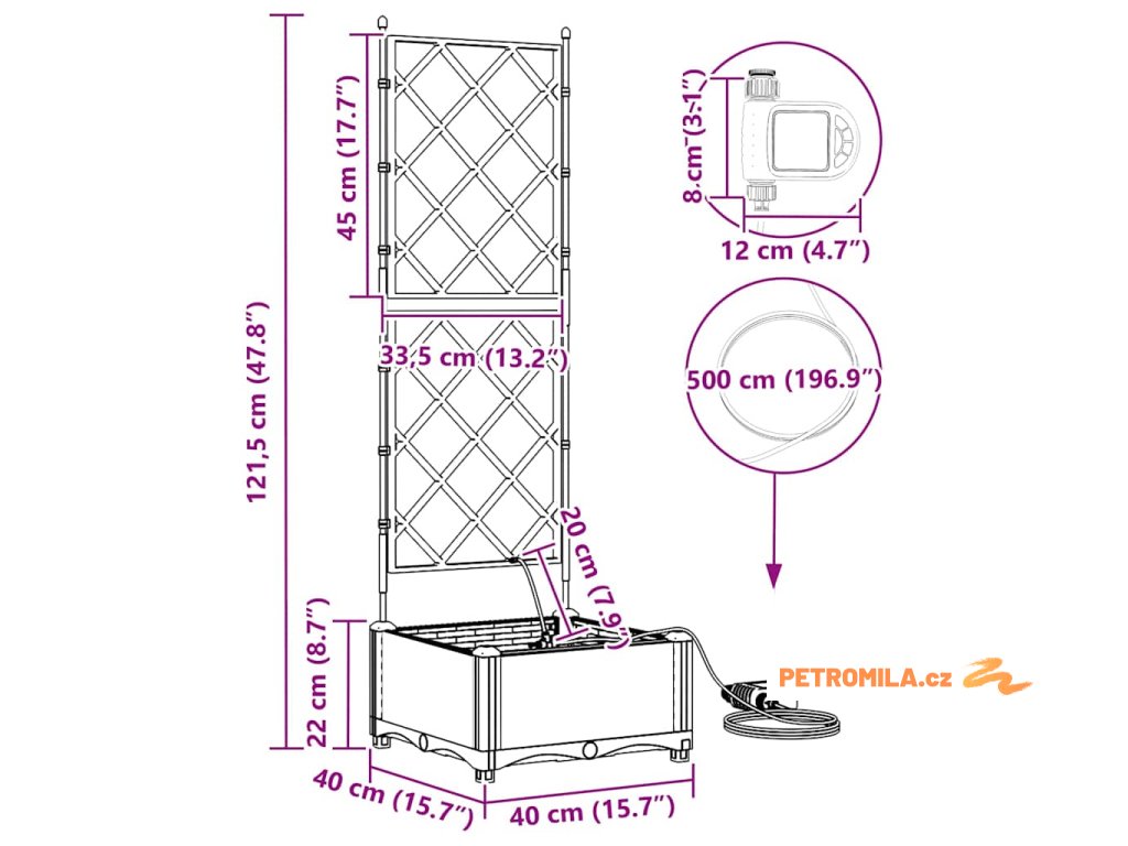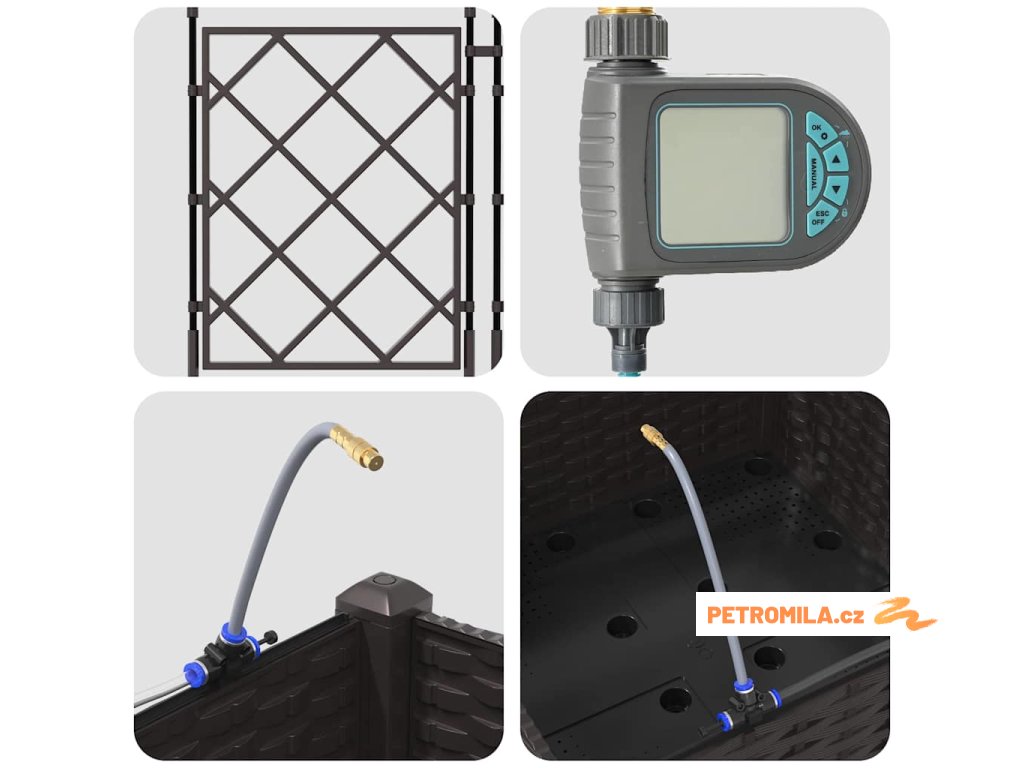 Materiál konstrukce: Zahradní květináč je vyroben z oceli odolné vůči UV záření, což zajišťuje trvanlivost a odolnost vůči povětrnostním změnám. Tato volba materiálu nabízí robustní ochranu, která vhodně odolává silnému slunečnímu záření a sezónním výkyvům, udržuje vaše rostliny naživu po celý rok bez kompromisů v strukturální integritě květináče.,Integrovaný zavlažovací systém: Tento zahradní květináč je vybaven pokročilým zavlažovacím systémem, který odstraňuje nejistotu při zalévání. Využívající integrované kanály, efektivně distribuuje vodu přímo k kořenům rostlin, což zajišťuje, že dostávají dostatečnou vlhkost, zatímco snižuje plýtvání vodou a podporuje zdravější růst.,Moderní design: Ukazuje chic tkaný vzor, elegantní jednoduchost tohoto květináče ladí s moderním estetickým pojetím. Jeho odrazivý matný povrch dodává jemný dotek, což mu umožňuje bez problémů zapadnout do různorodých venkovních prostředí i při zachování moderního stylu s čistými, decentními liniemi.,Všestranné použití: Ideální pro venkovní umístění, tento květináč má jak dekorativní, tak praktické účely. Jeho prostorný interiér pojme různé druhy rostlin, od bujných kapradin po živé květiny, což z něj činí vhodný pro sezónní přechody nebo celoroční použití, poskytující prvotřídní zkušenost s výsadbou pro koníčky i zkušené zahradníky.,Údržba a péče: Aby si zachoval svůj prvotřídní vzhled, umístěte tento květináč na stabilním místě a vyhněte se vystavení přímému slunečnímu záření po delší dobu. Pravidelně čistěte suchým hadříkem a zajišťujte spojení při sestavování, aby se zaručila stabilita a estetická hodnota v průběhu času.- Barva: Hnědá