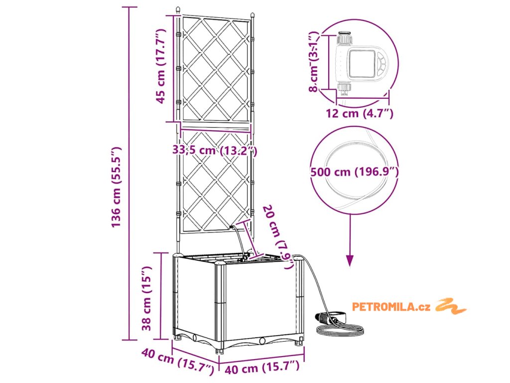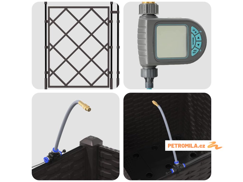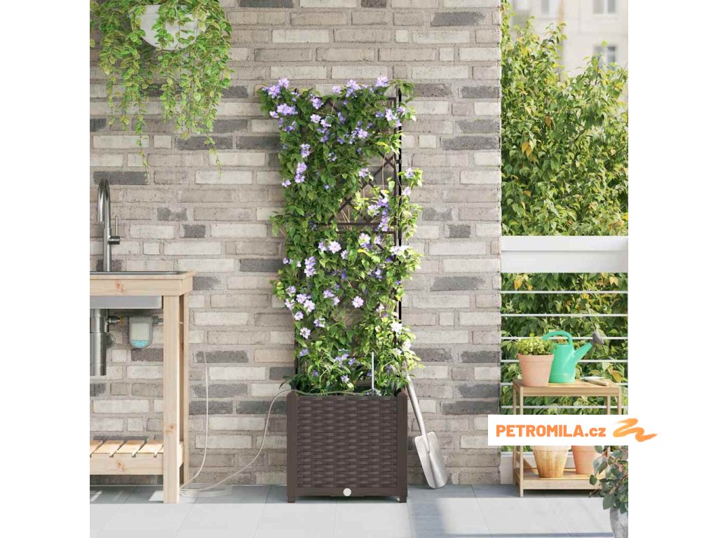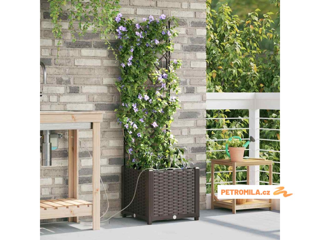 Materiál konstrukce: Zahradní květináč je vyroben z oceli odolné vůči UV záření, což zajišťuje trvanlivost a odolnost vůči povětrnostním změnám. Tato volba materiálu nabízí robustní ochranu, která vhodně odolává silnému slunečnímu záření a sezónním výkyvům, udržuje vaše rostliny naživu po celý rok bez kompromisů v strukturální integritě květináče.,Integrovaný zavlažovací systém: Tento zahradní květináč je vybaven pokročilým zavlažovacím systémem, který odstraňuje nejistotu při zalévání. Využívající integrované kanály, efektivně distribuuje vodu přímo k kořenům rostlin, což zajišťuje, že dostávají dostatečnou vlhkost, zatímco snižuje plýtvání vodou a podporuje zdravější růst.,Moderní design: Ukazuje chic tkaný vzor, elegantní jednoduchost tohoto květináče ladí s moderním estetickým pojetím. Jeho odrazivý matný povrch dodává jemný dotek, což mu umožňuje bez problémů zapadnout do různorodých venkovních prostředí i při zachování moderního stylu s čistými, decentními liniemi.,Všestranné použití: Ideální pro venkovní umístění, tento květináč má jak dekorativní, tak praktické účely. Jeho prostorný interiér pojme různé druhy rostlin, od bujných kapradin po živé květiny, což z něj činí vhodný pro sezónní přechody nebo celoroční použití, poskytující prvotřídní zkušenost s výsadbou pro koníčky i zkušené zahradníky.,Údržba a péče: Aby si zachoval svůj prvotřídní vzhled, umístěte tento květináč na stabilním místě a vyhněte se vystavení přímému slunečnímu záření po delší dobu. Pravidelně čistěte suchým hadříkem a zajišťujte spojení při sestavování, aby se zaručila stabilita a estetická hodnota v průběhu času.- Barva: Hnědá