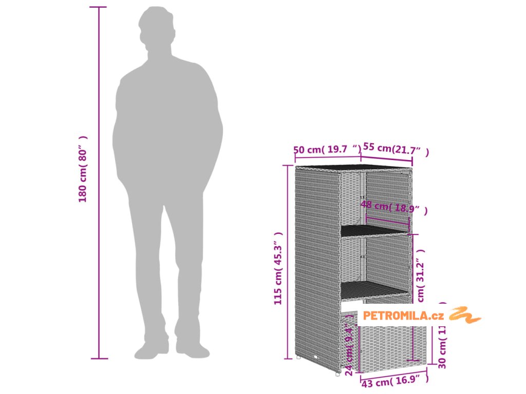 - Rozměry: 50 x 55 x 115 cm (Š x H x V)