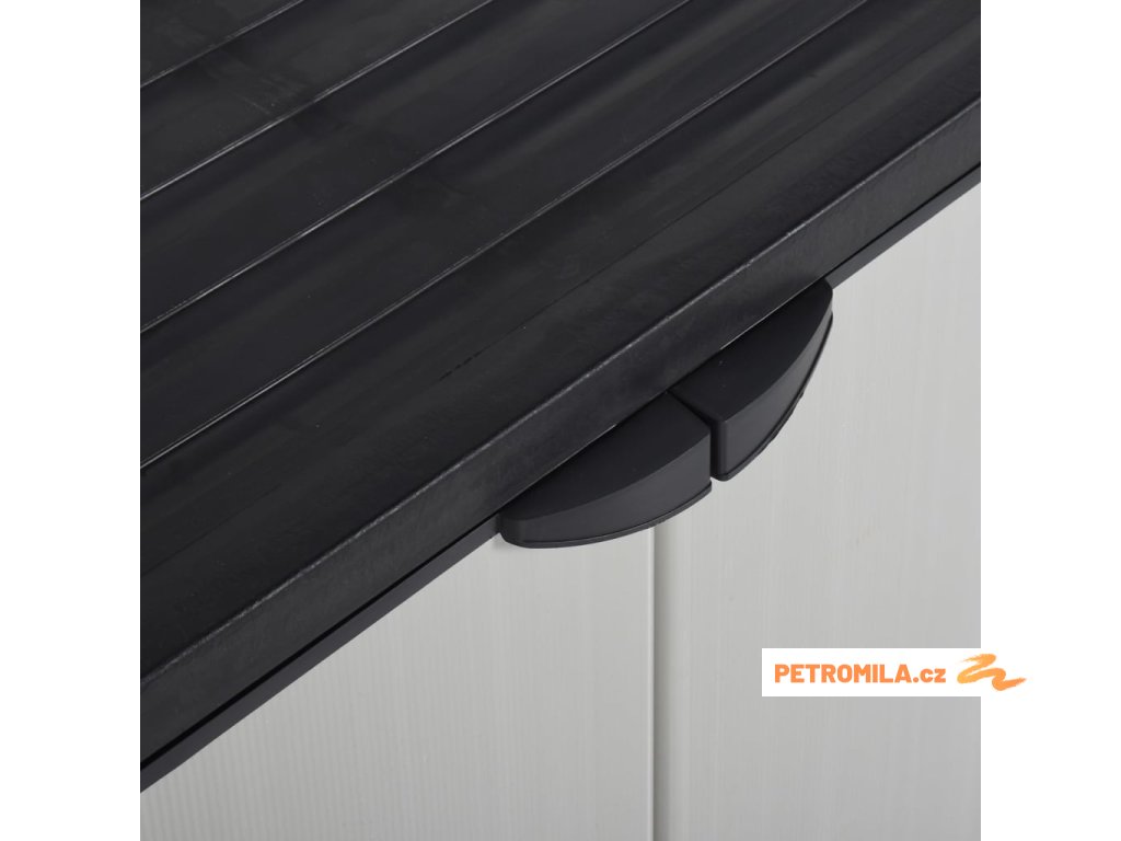 Tato venkovní skříň je vyrobena z PVC a PP (polypropylenu), takže je pevná, odolná a snadno se čistí. Plastová skříň nabízí dostatek úložného prostoru, abyste měli své základní věci uspořádané a po ruce. Zahradní skříň lze pro větší bezpečnost uzamknout visacím zámkem (zámek není součástí dodávky). Skříň na nářadí má kompaktní design a maximálně využívá omezený prostor.