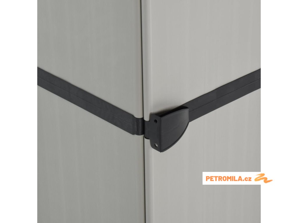 Skříň na terasu je vyrobena z PVC a PP (polypropylenu), takže je robustní, dlouho vydrží a snadno se čistí. Tato skříň na balkon je vybavena 3 policemi, poskytne vám tedy spoustu úložného prostoru pro všechny důležité věci, které chcete mít přehledně uschované a na dosah ruky. Zahradní skříňka má kompaktní design a maximálně využije omezený prostor.