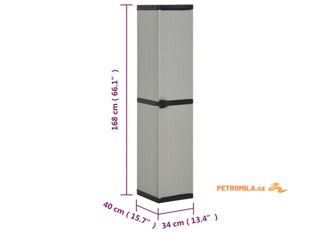 Zahradní úložná skříň se 3 policemi šedá a černá 34x40x168 cm