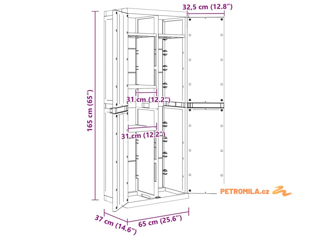 - Rozměry: 65 x 37 x 165 cm (D x Š x V)