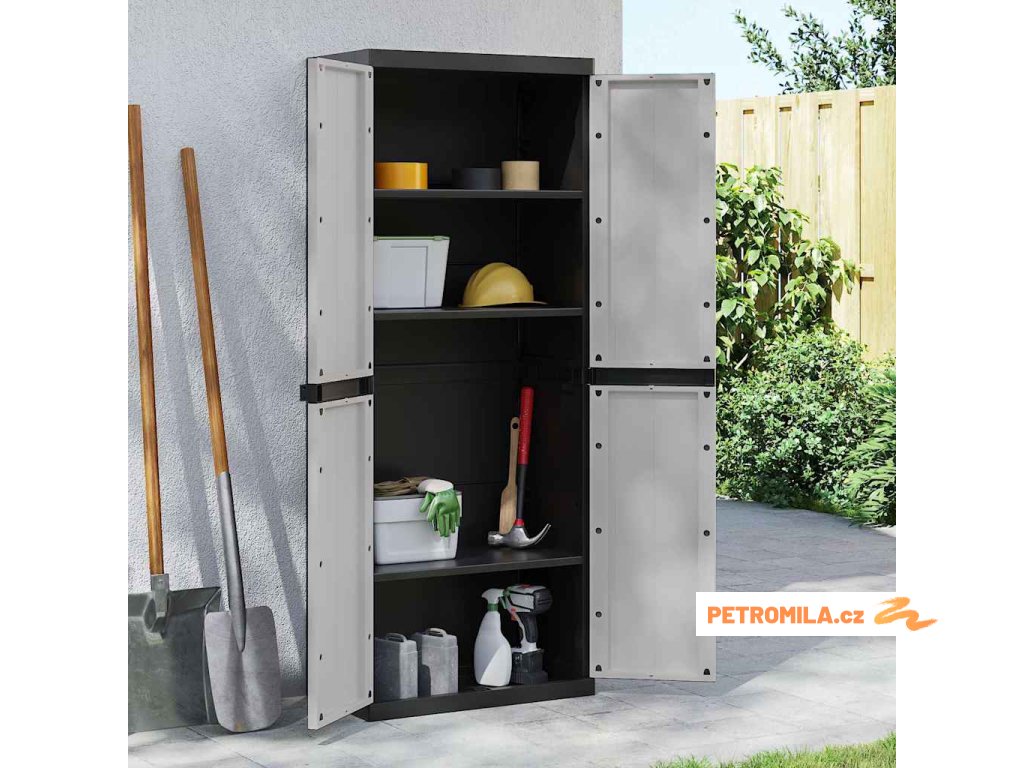 - Odolný materiál: Polypropylen (PP) je oblíbený plast, který je také jedním z nejpoužívanějších materiálů při výrobě venkovního nábytku. Je lehký, pevný a odolný proti nárazům. Tato zahradní skříň je navíc odolná proti povětrnostním vlivům a snadno se udržuje.