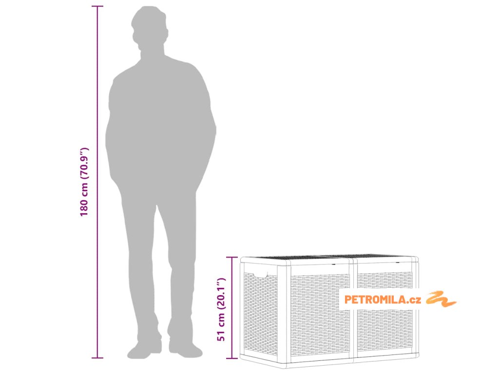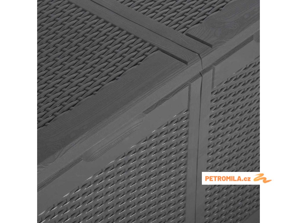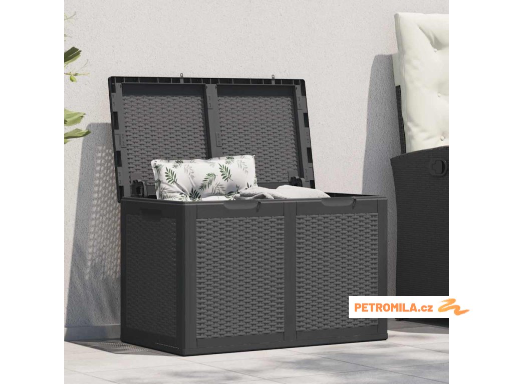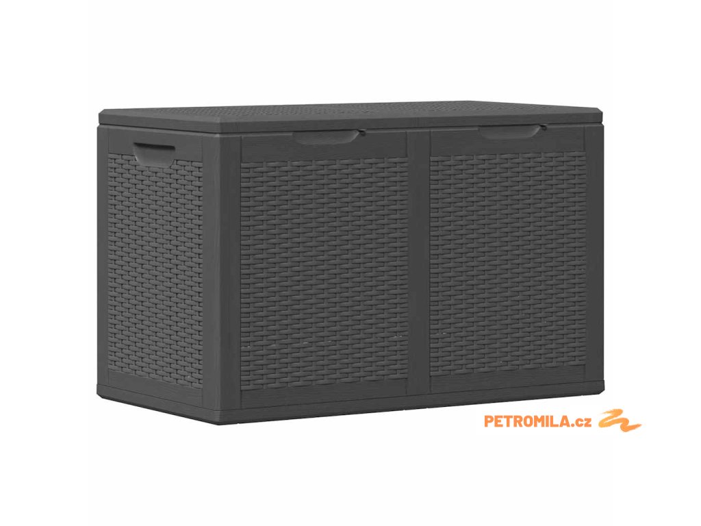 Úložná truhla je vyrobena ze 100% PP materiálu, takže je odolná vůči povětrnostním vlivům, UV záření, je lehká a snadno se přenáší. Zahradní úložný box se vyznačuje decentním, ale nadčasovým designem a dokonale zapadne do vašeho interiéru i exteriéru. Nabízí dostatek úložného prostoru pro podušky, polštáře a další domácí nebo zahradní potřeby, které chcete mít po ruce.