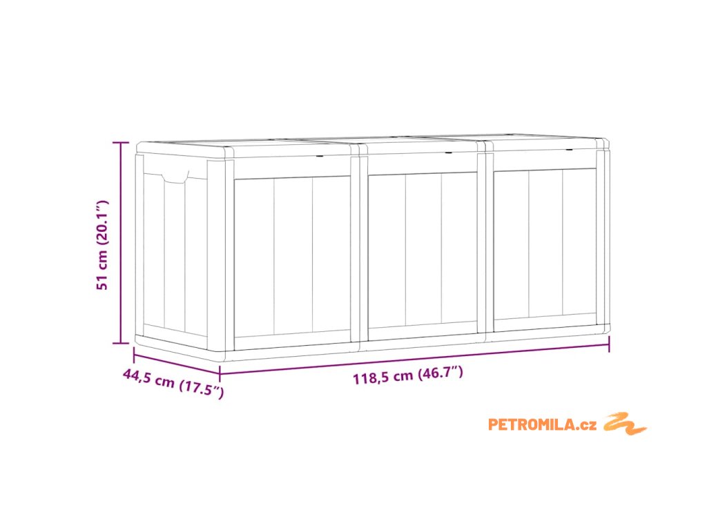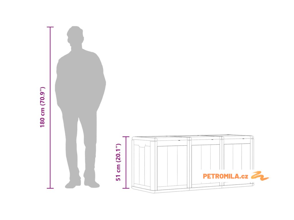 Úložná truhla je vyrobena ze 100% PP materiálu, takže je odolná vůči povětrnostním vlivům, UV záření, je lehká a snadno se přenáší. Zahradní úložný box se vyznačuje decentním, ale nadčasovým designem a dokonale zapadne do vašeho interiéru i exteriéru. Nabízí dostatek úložného prostoru pro podušky, polštáře a další domácí nebo zahradní potřeby, které chcete mít po ruce.