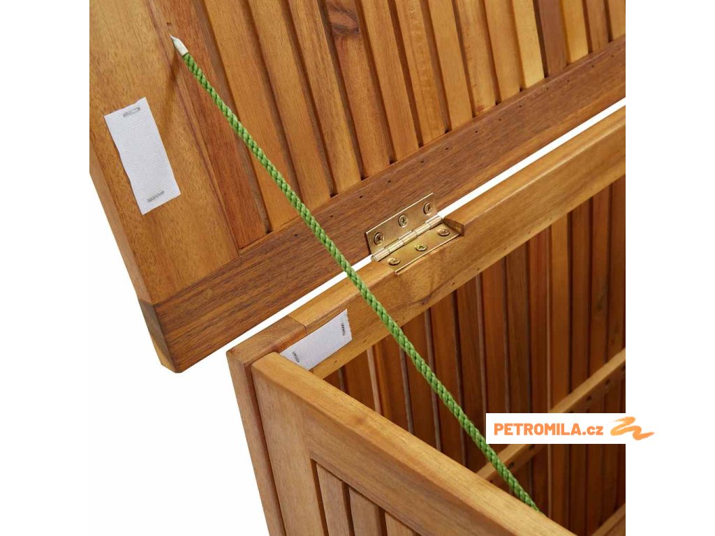 Úložná lavice je vyrobená z masivního akáciového dřeva, jehož povrch je ošetřený olejem, je tudíž odolný vůči opotřebení, velmi odolný a vhodný pro venkovní použití. Velký úložný prostor poskytuje dostatek místa pro přehledné ukládání různých předmětů pro domácnost nebo zahradu.