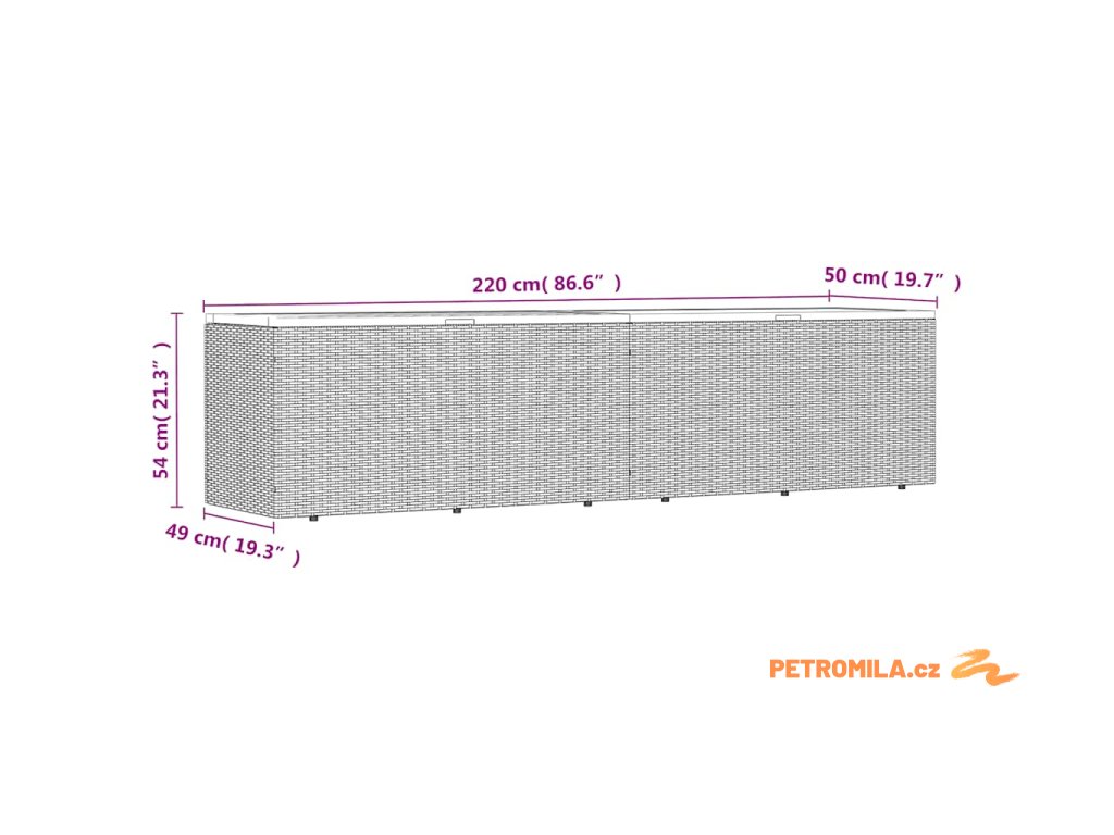 - Celkové rozměry: 220 x 50 x 54 cm (Š x H x V)