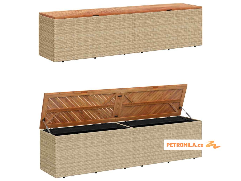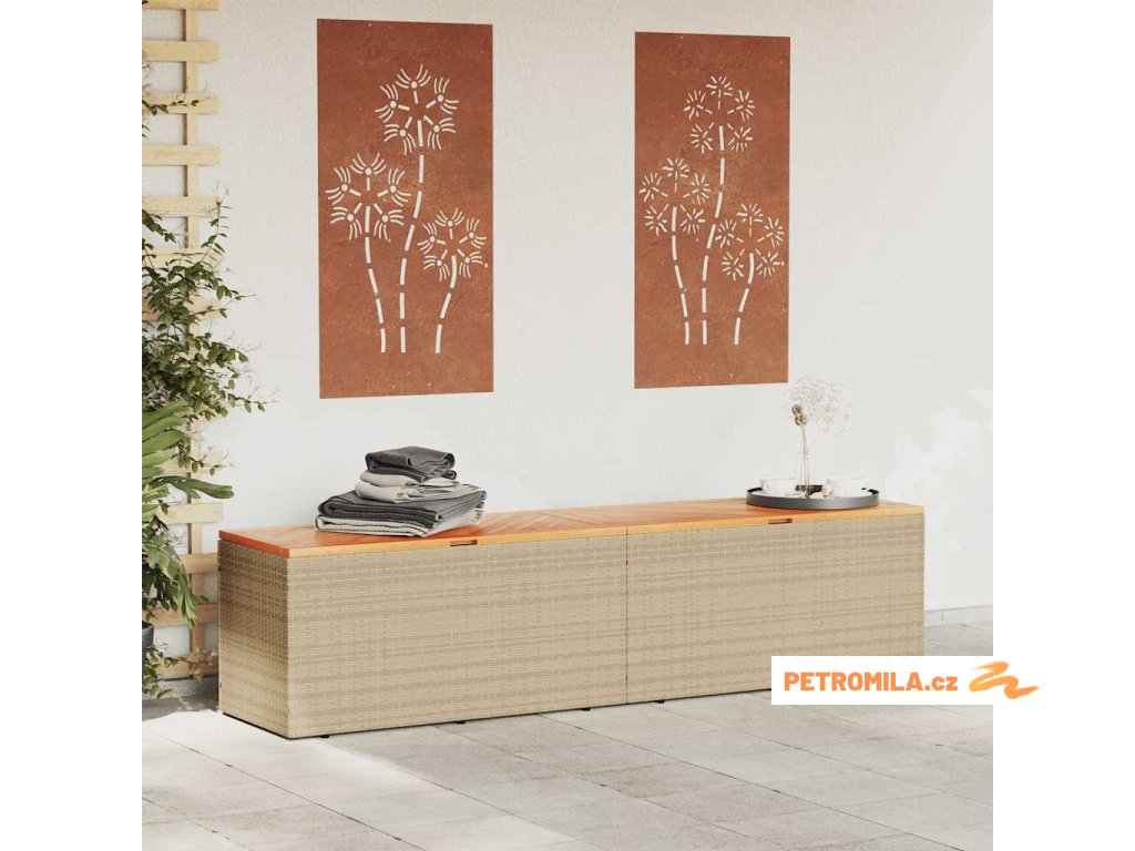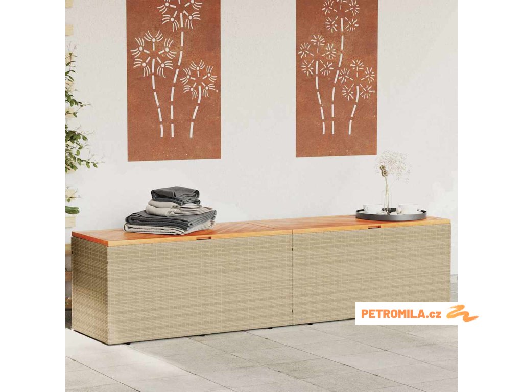 Zahradní úložný box béžový 220 x 50 x 54 cm polyratan a akácie