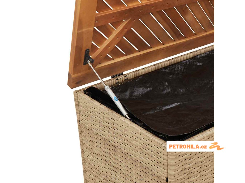 - Úložný prostor s voděodolným vakem: Zahradní nábytek má úložný prostor pod sedákem, který je opatřen voděodolnou vložkou a poslouží vám k ukládání podušek, hraček a dalších věcí. Vnitřní vak lze bezpečně připevnit k venkovnímu nábytku pomocí suchého zipu, což zaručí větší stabilitu.