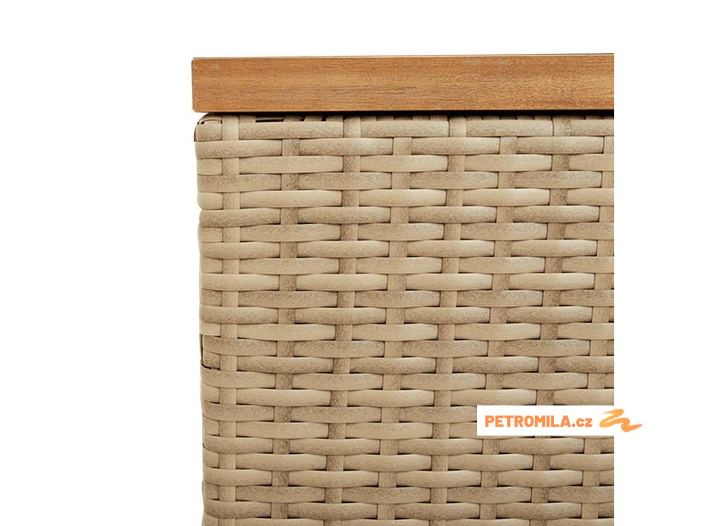 - Materiál: PE ratan, práškově lakovaná ocel, masivní akáciové dřevo s olejovou povrchovou úpravou
