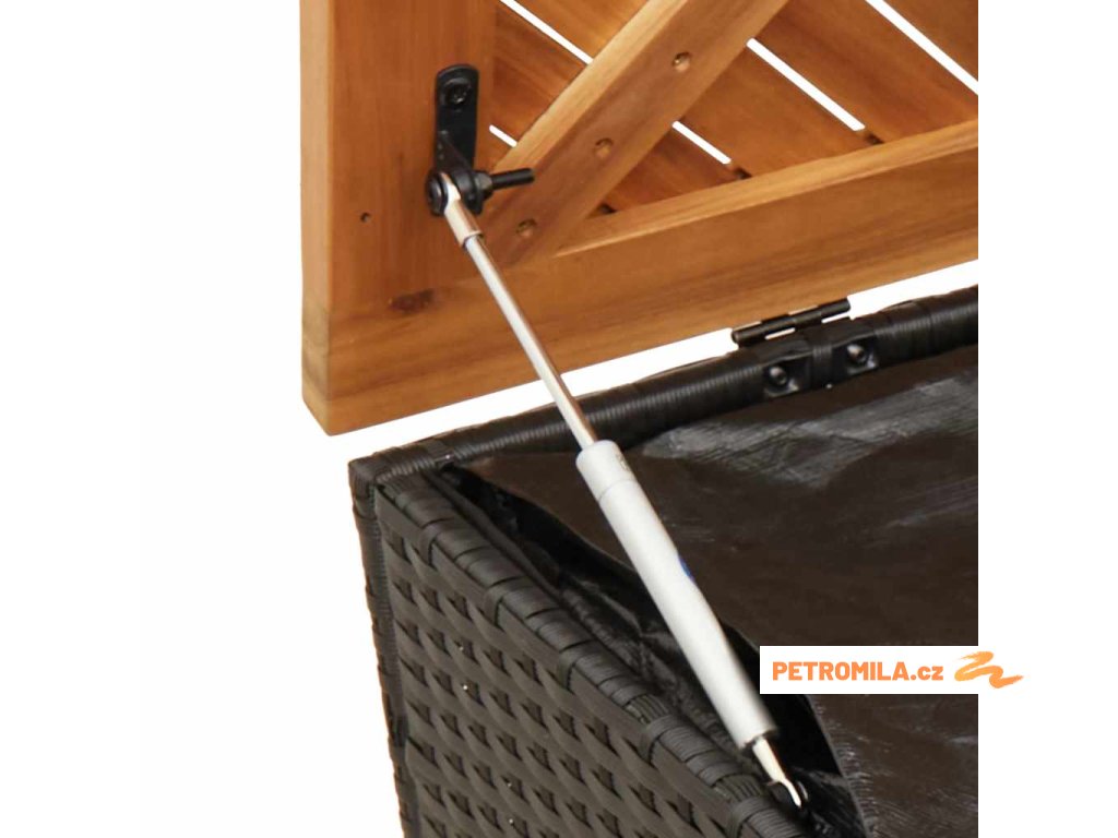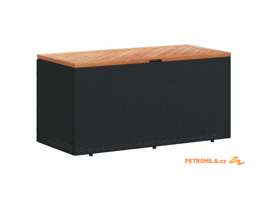 Zahradní úložný box černý 110x50x54 cm polyratan akáciové dřevo