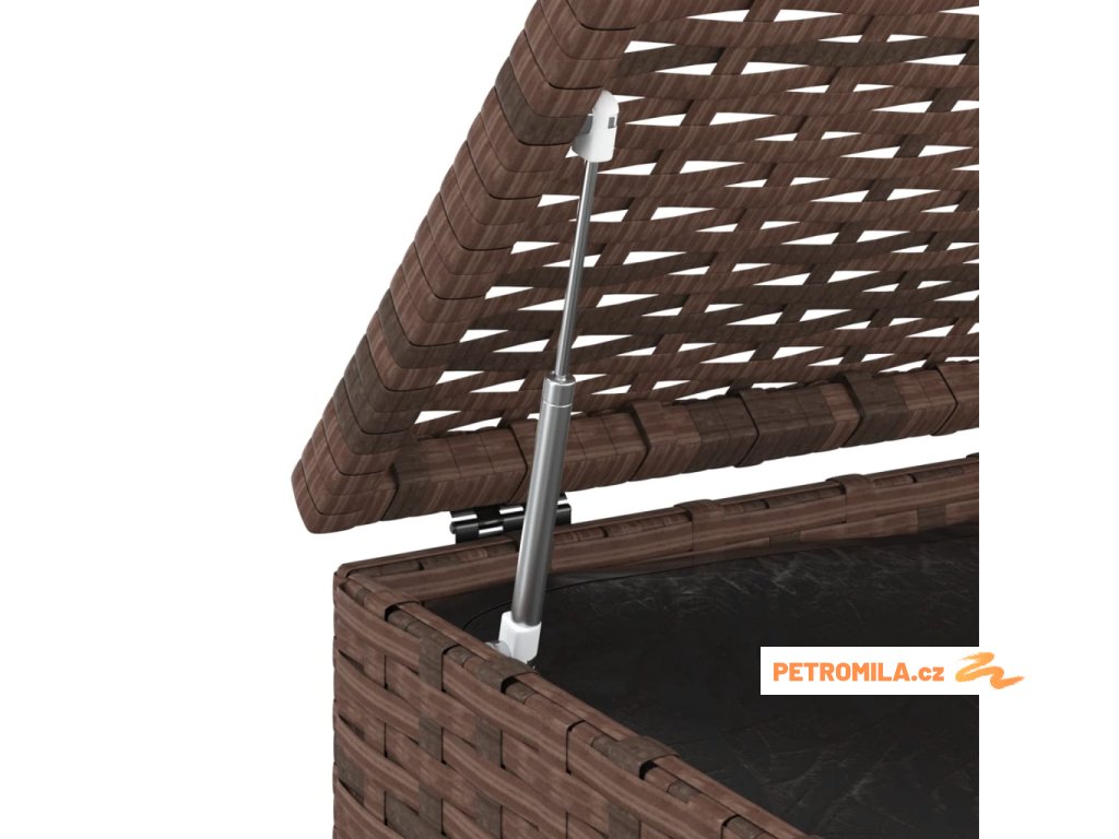 Tento zahradní úložný box má robustní ocelový rám s práškovým nástřikem, který se vyznačuje vysokou odolností. Úložná truhla je zhotovena z PE ratanu odolného vůči povětrnostním vlivům, snadno se tedy čistí a je vhodná pro venkovní i vnitřní použití. Vnitřní voděodolný vak z PE s krytem a zipem chrání vaše věci před vlhkostí. Box na podušky je navíc vybaven mechanismem s plynovým pístem, který usnadňuje otevírání a zavírání a chrání prsty a ruce před nechtěným přivřením.