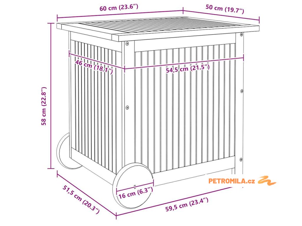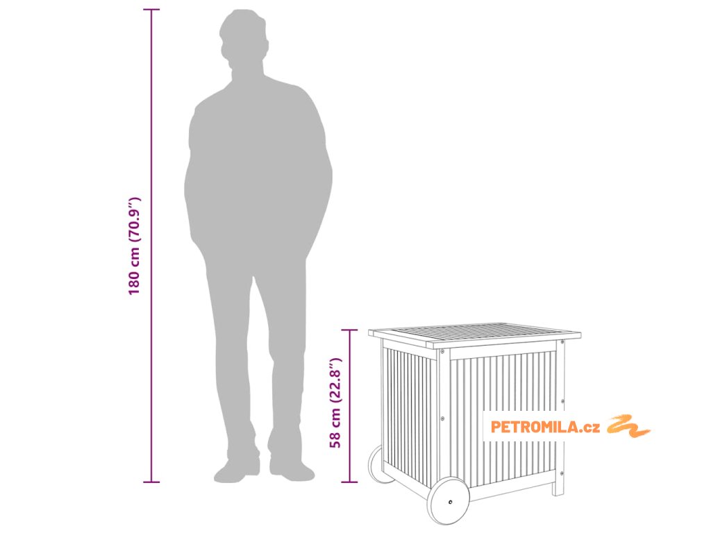 Zahradní úložný box s kolečky 60 x 50 x 58 cm masivní akácie