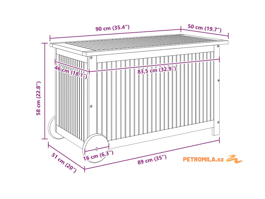 Zahradní úložný box s kolečky 90 x 50 x 58 cm masivní akácie