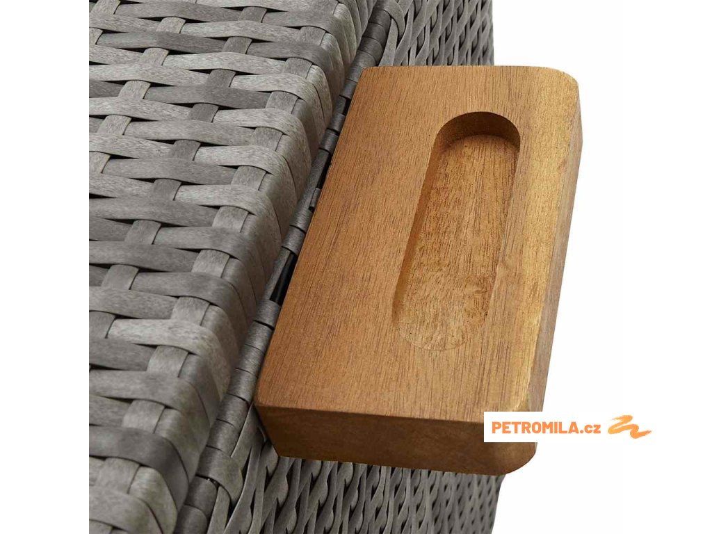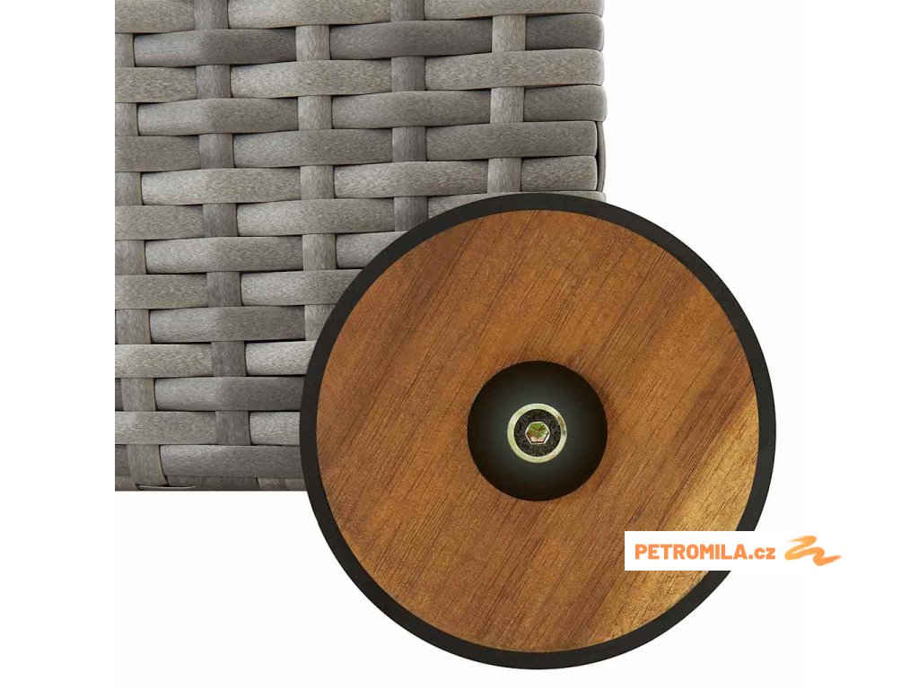 - Materiál: PE ratan, masivní akáciové dřevo s olejovaným povrchem, práškově lakovaná ocel