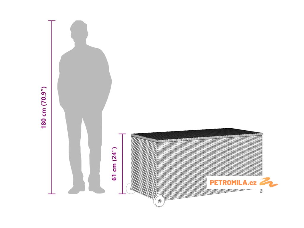 Úložný box z klimaticky odolného a solidního ratanu je perfektní pro vnitřní i vnější použití. Tento box na podušky je vhodný pro uložení vašich podušek, polštářů, přikrývek, hraček a dalších věcí. Dřevěná rukojeť je napuštěná olejem a vnitřní vak chrání vaše věci před vlhkostí. Úložný box je navržený se 2 kolečky a rukojetí na jedné straně pro snadnou přepravu. Navíc se snadno čistí vlhkým hadříkem.