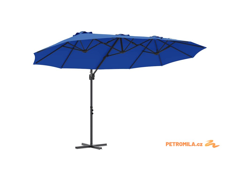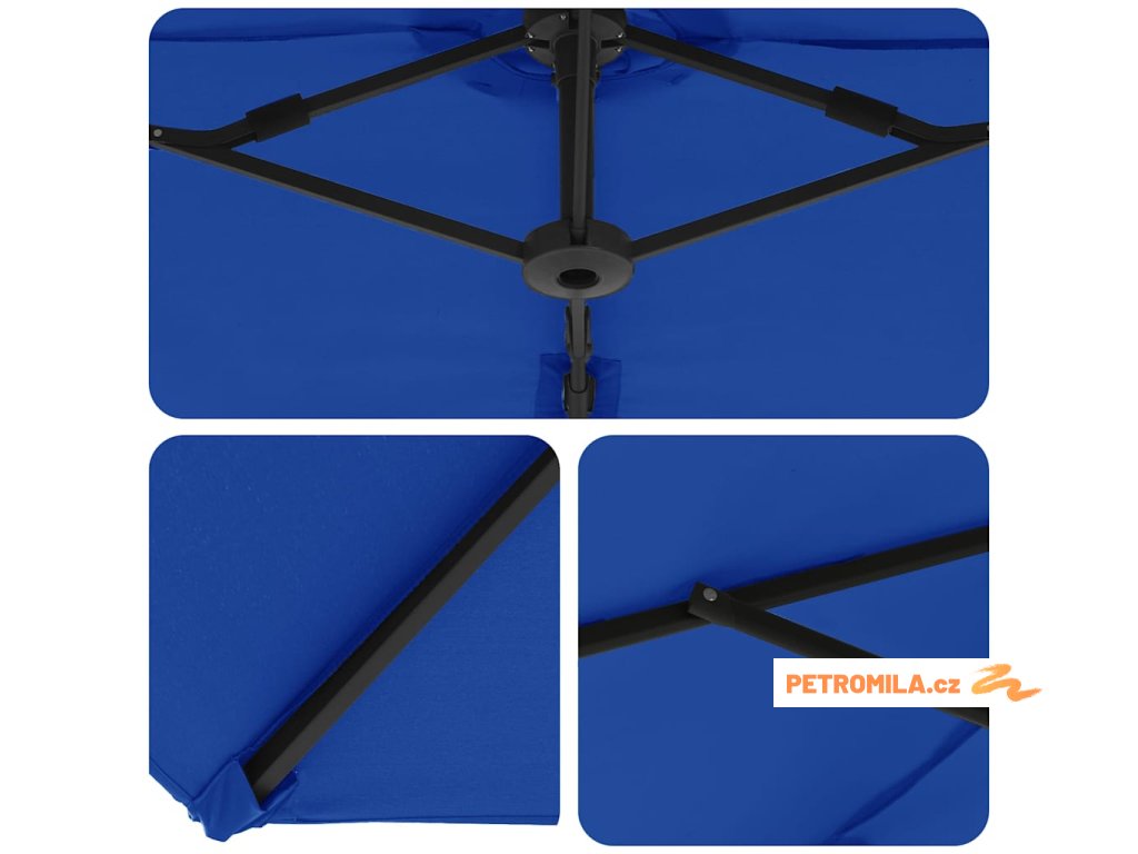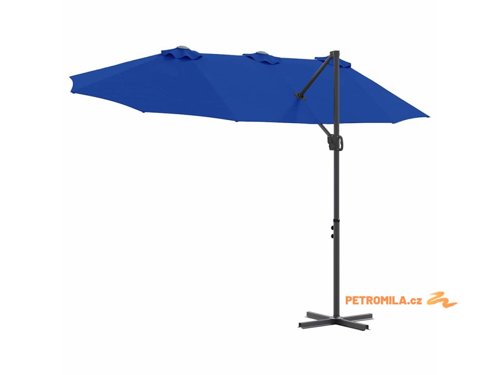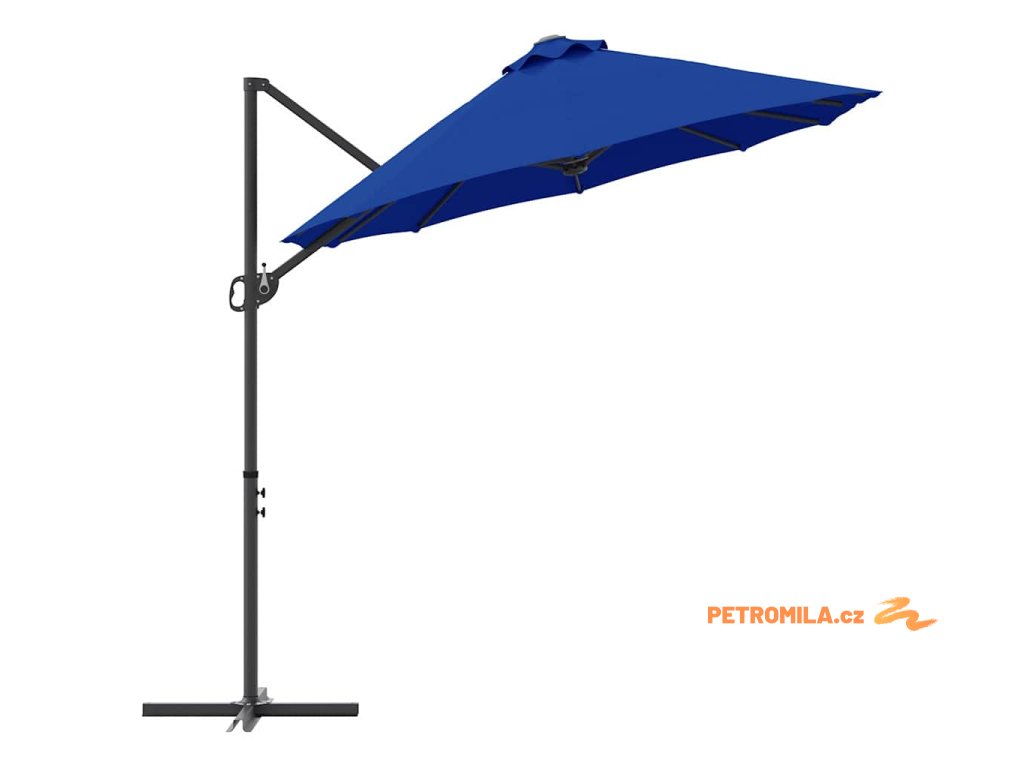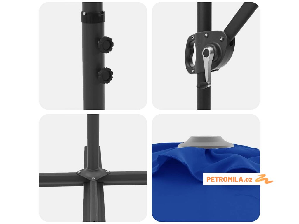 - Funkce / Design: Tenhle deštník kombinuje moderní styl s praktičností. Je navržený tak, aby vydržel venku, a jeho UV a voděodolné materiály ho činí ještě odolnějším. Konzolový design umožňuje maximální stín bez otravné tyče v cestě, takže prostor zůstává volný.
