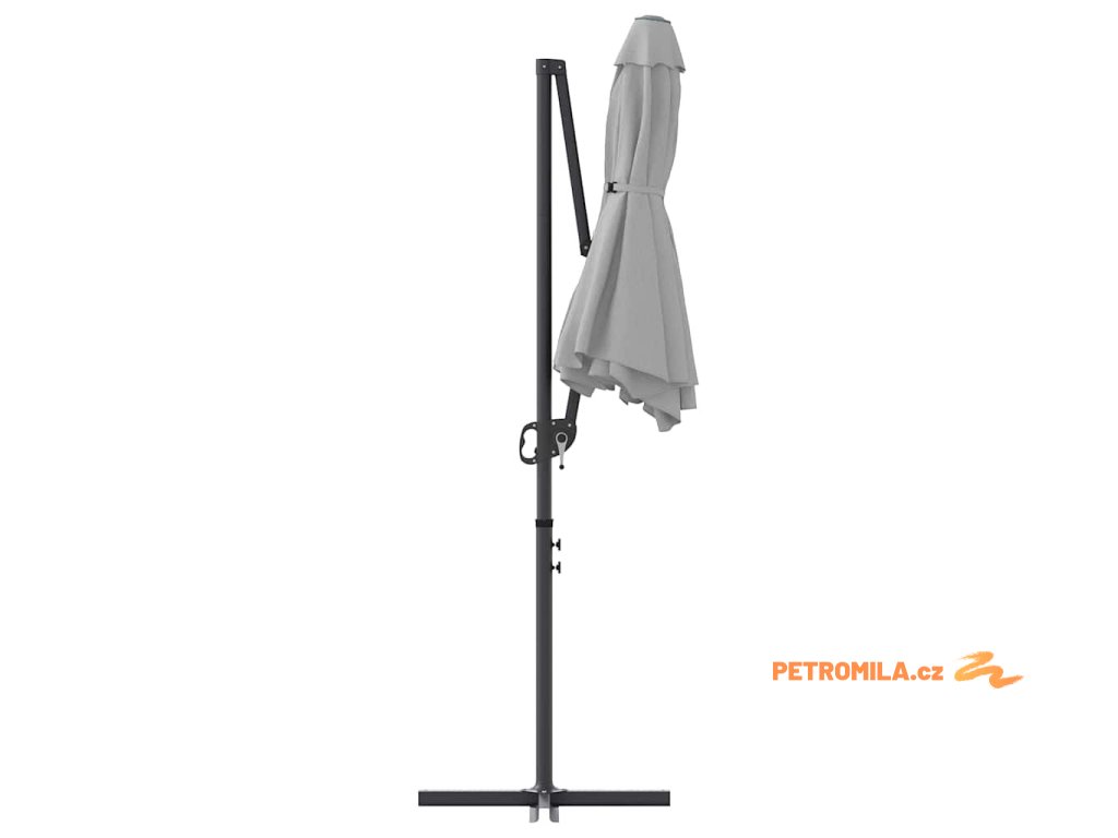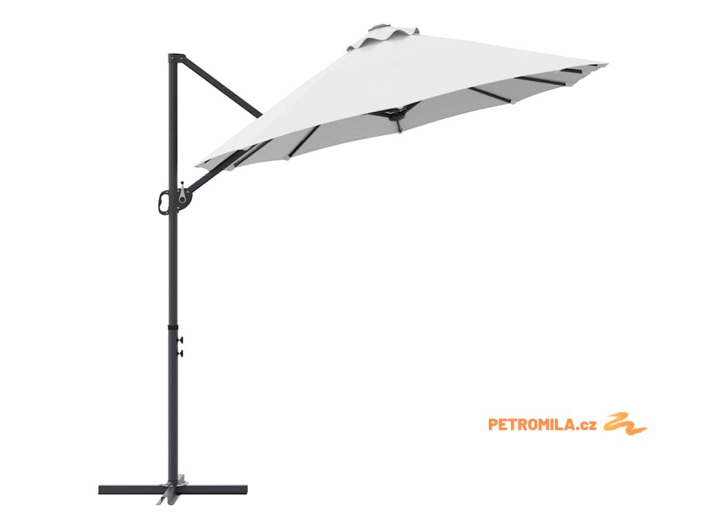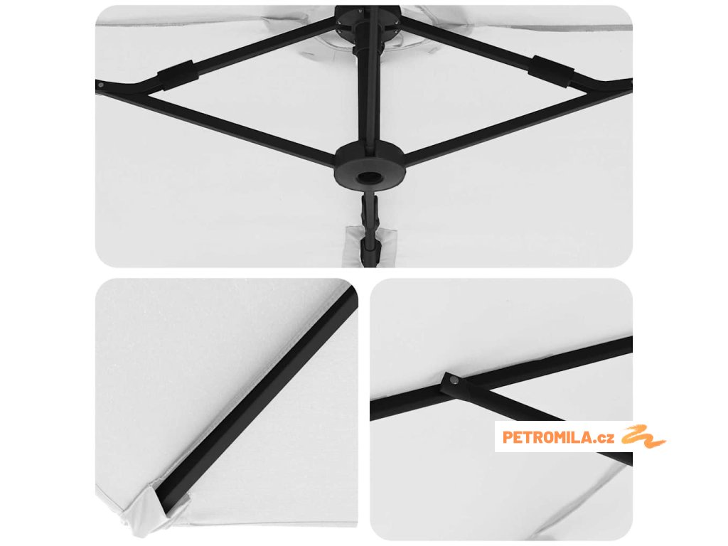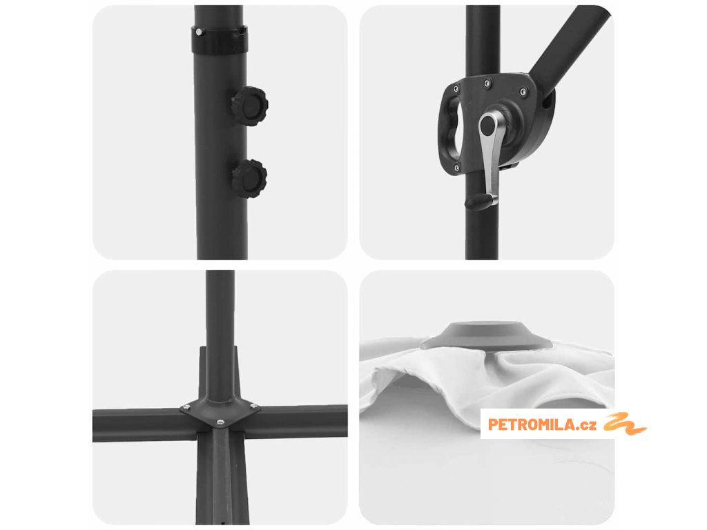 - Funkce / Design: Tenhle deštník kombinuje moderní styl s praktičností. Je navržený tak, aby vydržel venku, a jeho UV a voděodolné materiály ho činí ještě odolnějším. Konzolový design umožňuje maximální stín bez otravné tyče v cestě, takže prostor zůstává volný.