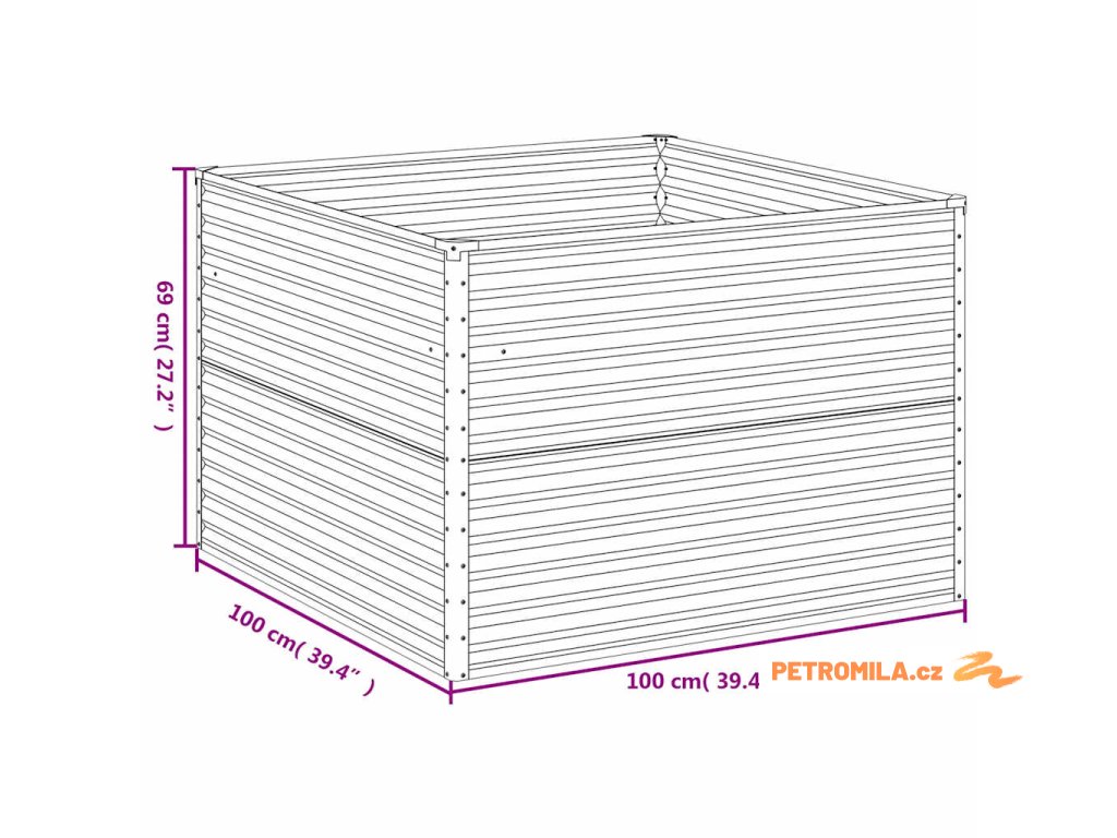 Zahradní vyvýšený záhon 100 x 100 x 69 cm cortenová ocel