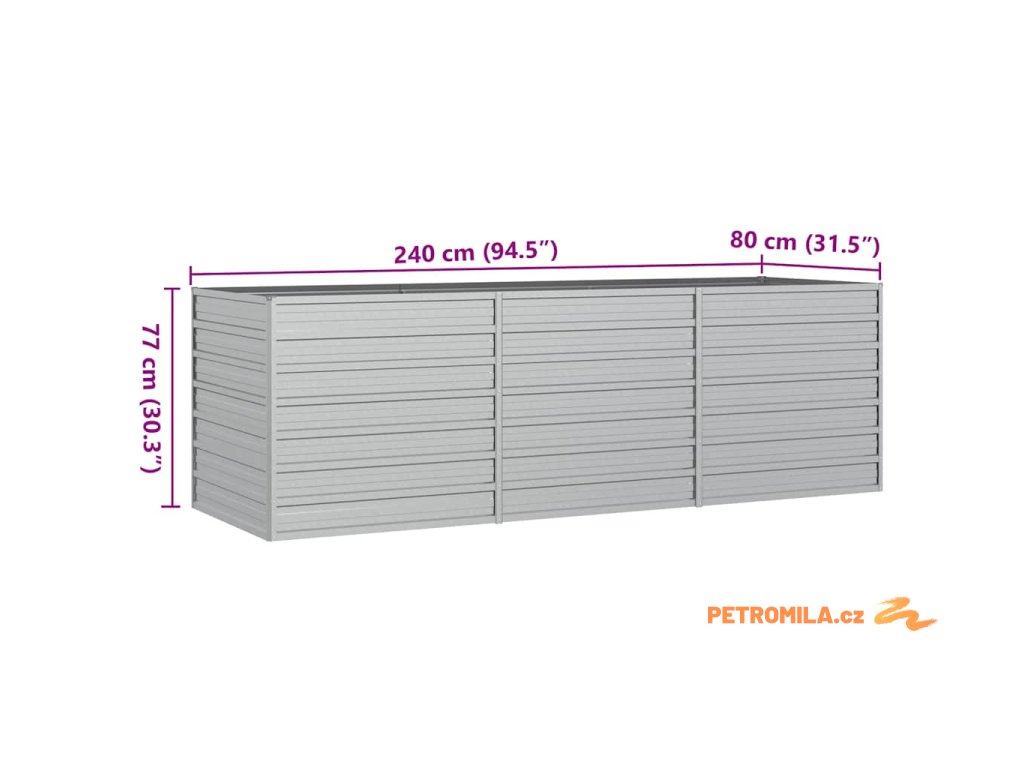 Zahradní vyvýšený záhon 240x80x77 cm pozinkovaná ocel stříbrný