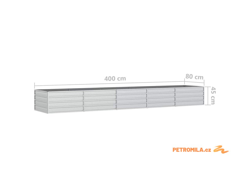 Zahradní vyvýšený záhon 400x80x45 cm pozinkovaná ocel stříbrný