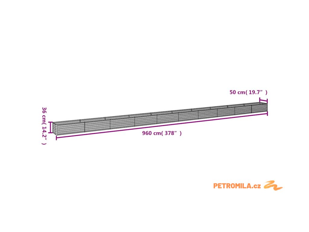Zahradní vyvýšený záhon 960 x 50 x 36 cm cortenová ocel