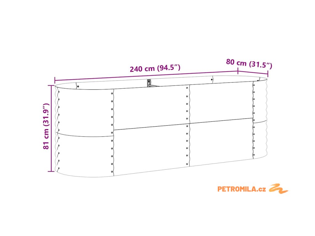 Zahradní vyvýšený záhon Hnědá 240 x 80 x 81 cm Ocel