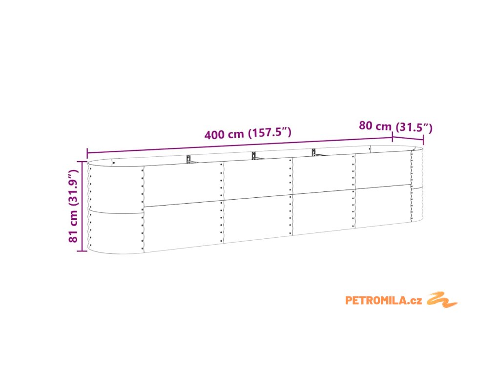 Zahradní vyvýšený záhon Hnědá 400 x 80 x 81 cm Ocel