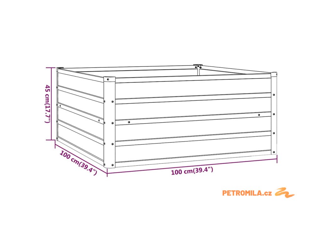 Zahradní vyvýšený záhon rezavý 100 x 100 x 45 cm cortenová ocel