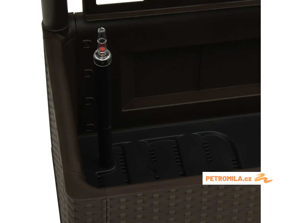 Zabudovaná treláž nabízí vynikající podporu pro popínavé rostliny, jako jsou bylinky, rajčata, fazole atd. Je vyrobená z robustního UV- a mrazuvzdorného plastu a je vhodný pro vnitřní i venkovní použití. Design velmi realisticky připomíná pravou ratanovou strukturu. Materiál lze mýt vodou a snadno se čistí. Truhlík má 90l nádrž na vodu, ze které může automaticky zavlažovat rostliny. Zároveň je vybavený otvory pro přepad vody, které zabraňují přetečení. Indikátor úrovně vody je součástí balení.