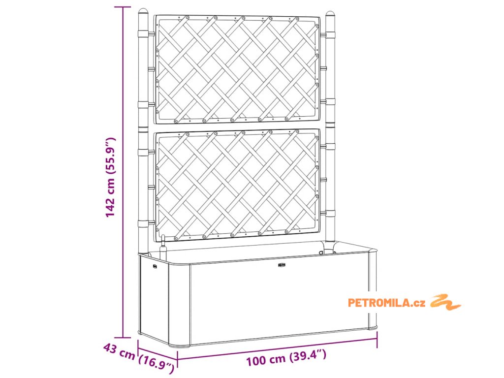 Vytvořte svým květinám krásné pozadí s tímto elegantním, funkčním a jedinečným samozavlažovacím vyvýšeným záhonem! Do tohoto truhlíku s treláží se vejde velké množství zelených rostlin a květin.