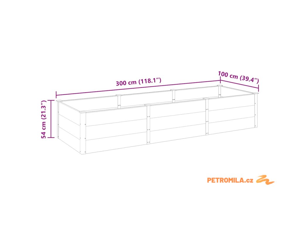 - Rozměry: 300 x 100 x 54 cm (Š x H x V)