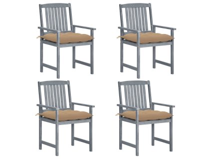 Režisérská křesla s poduškami 4 ks šedá masivní akáciové dřevo