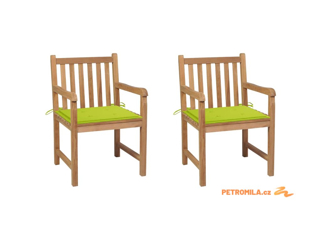 Zahradní židle 2 ks jasně zelené podušky masivní teakové dřevo